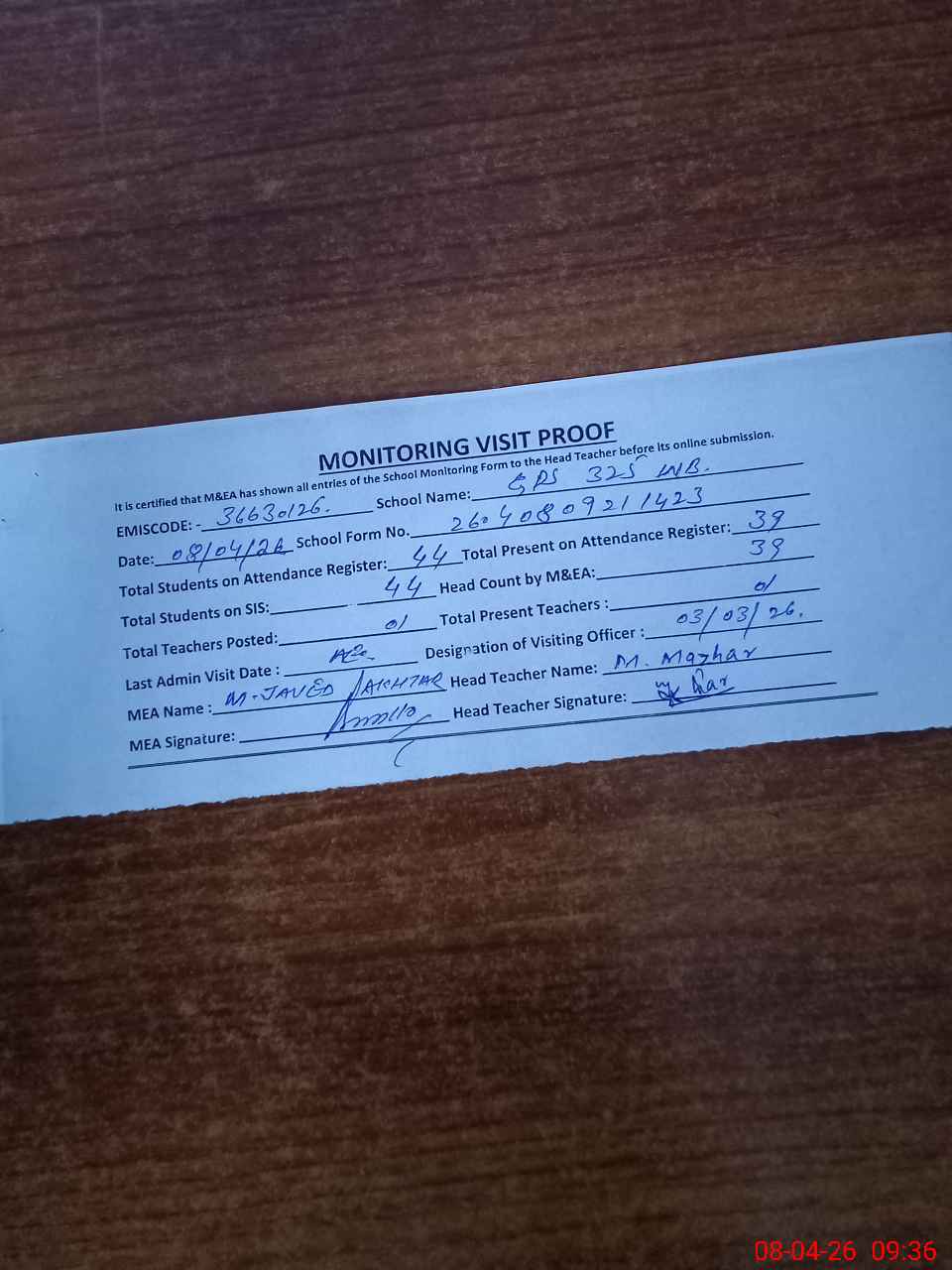 | EMIS Code: 36630126 | Name of School: GPS 325/WB | |||