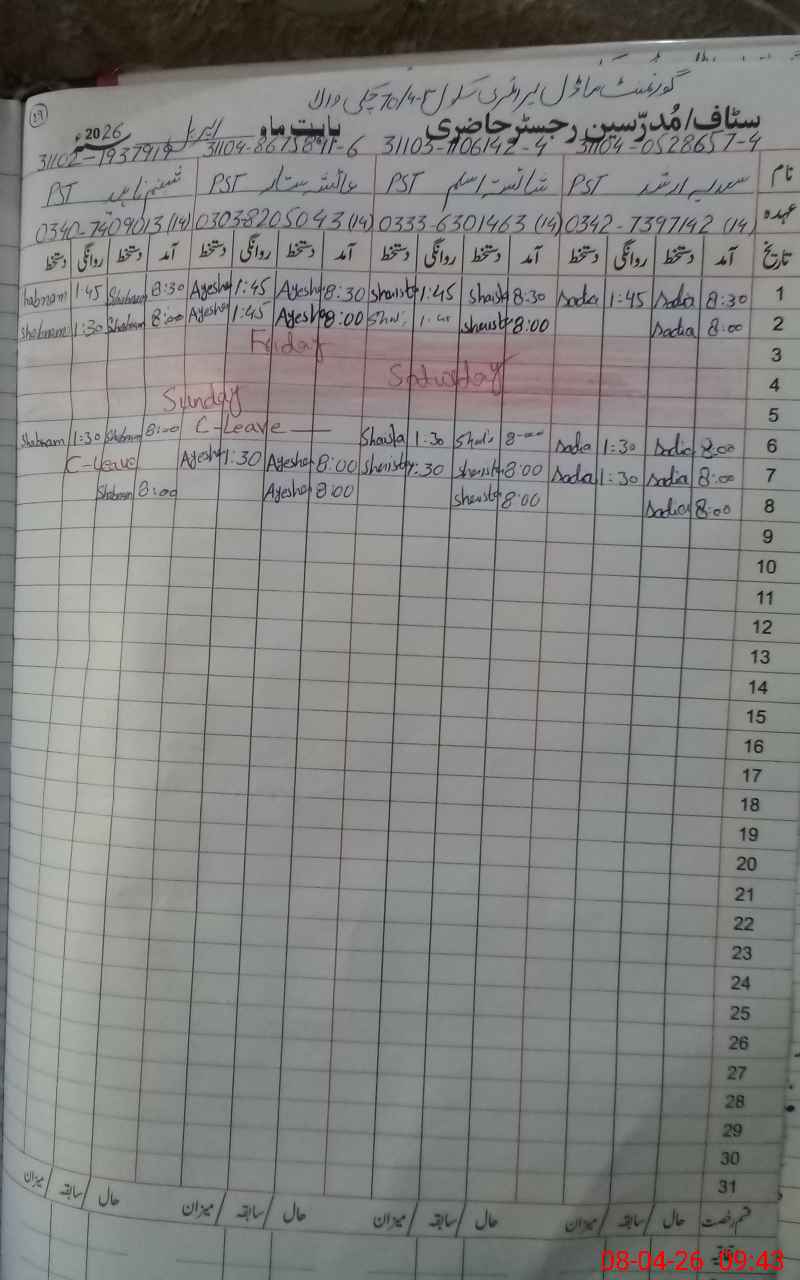 | Name: Ab**** Sa**** Designation: (School Headmaster's/Headmistress's) EST Phone/Cell Number: 03**** |