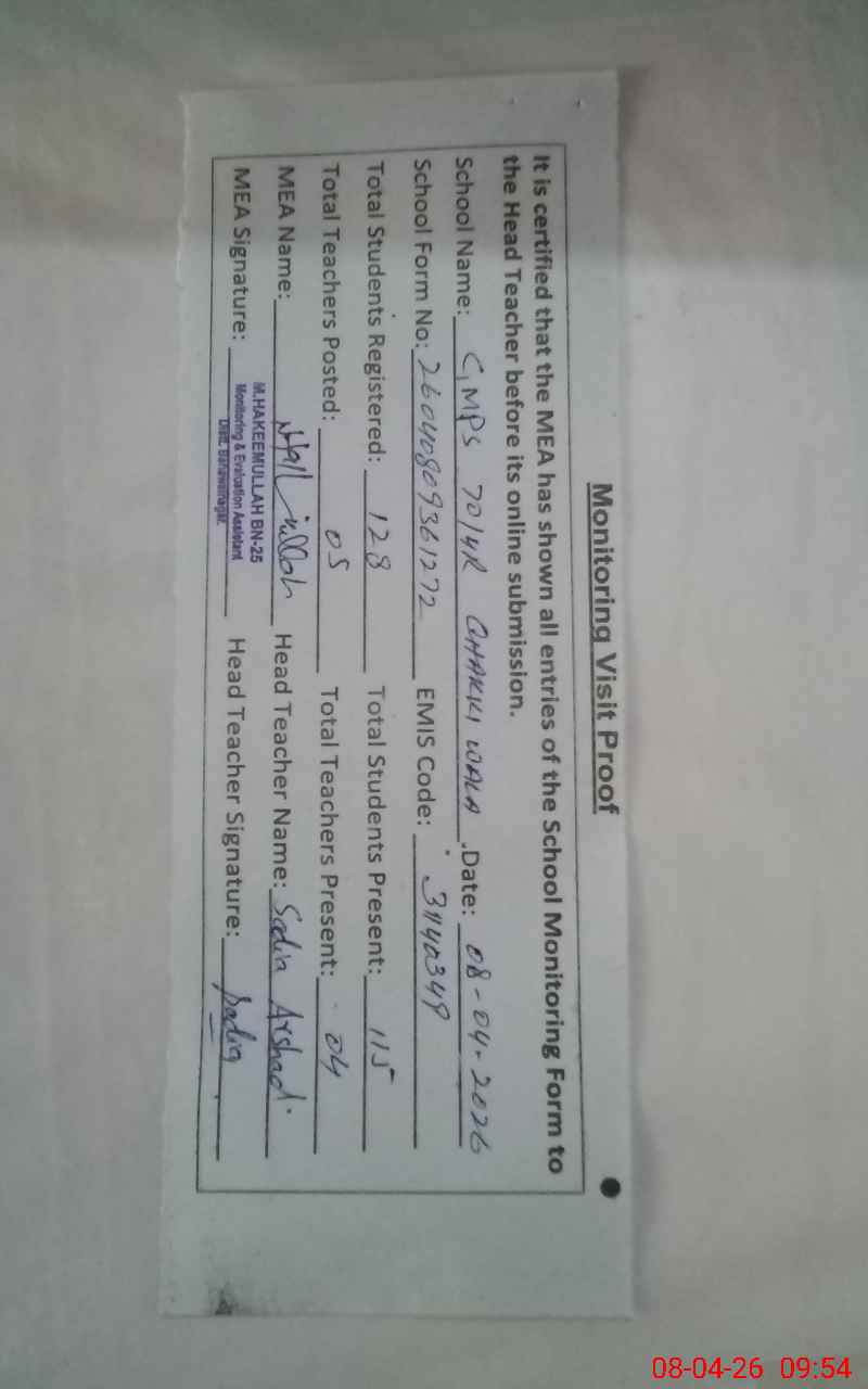 | EMIS Code: 31140349 | Name of School: GMPS CHAK NO 70/4-R CHAKKI WALA | |||