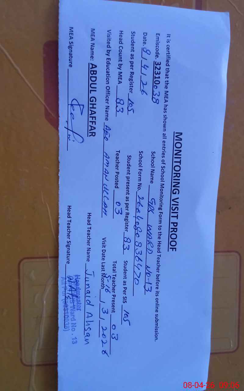 | EMIS Code: 32310038 | Name of School: GPS WARD NO. 13 ALIPUR | |||