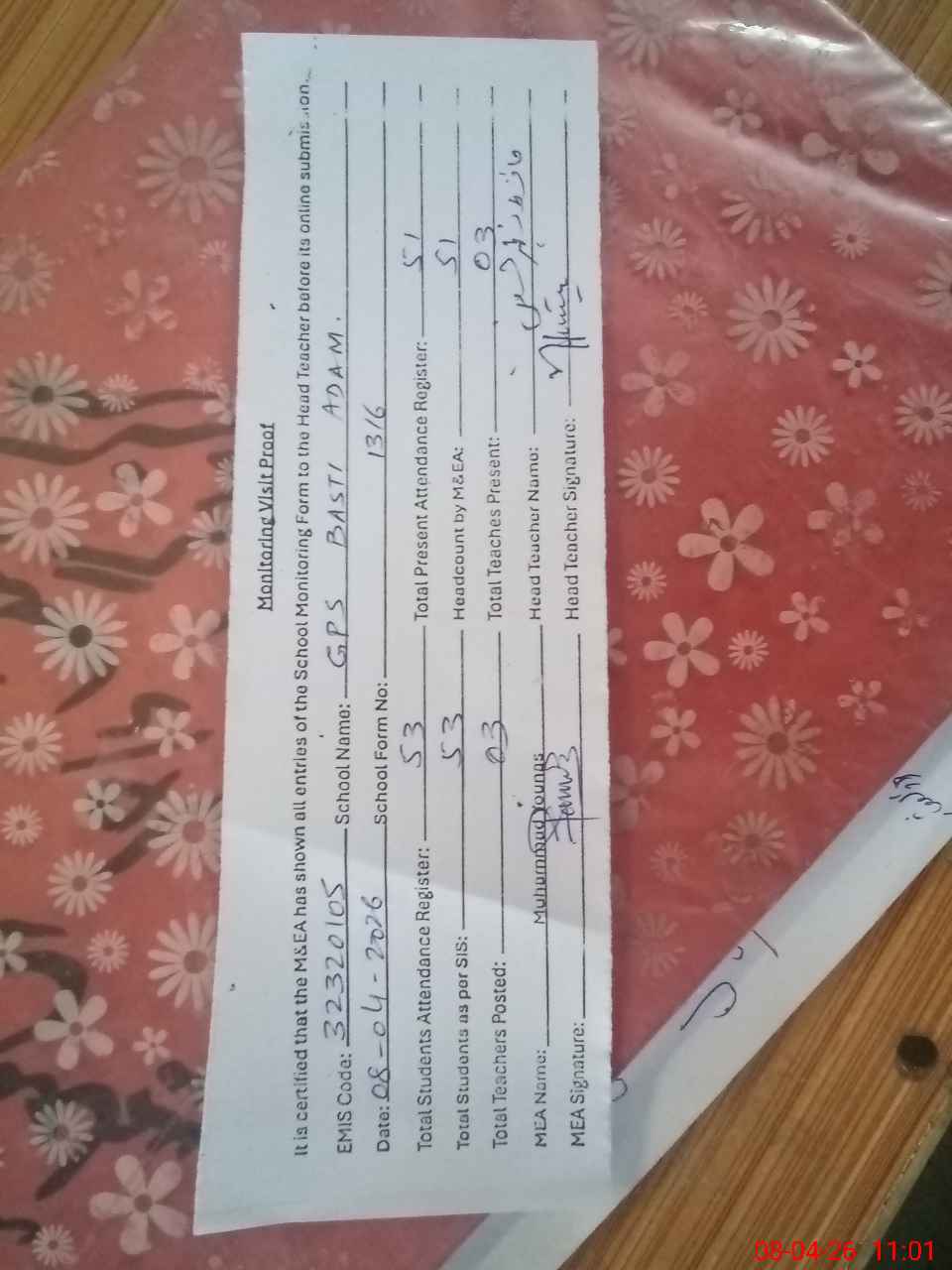 | EMIS Code: 32320105 | Name of School: GPS BASTI ADAM | |||