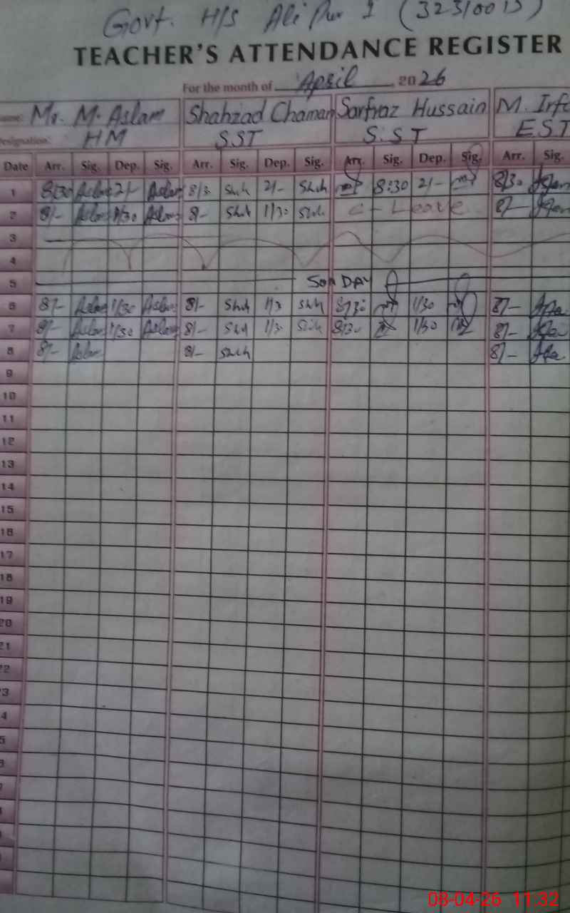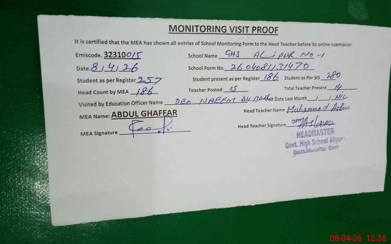 | EMIS Code: 32310015 | Name of School: GHS ALI PUR | |||