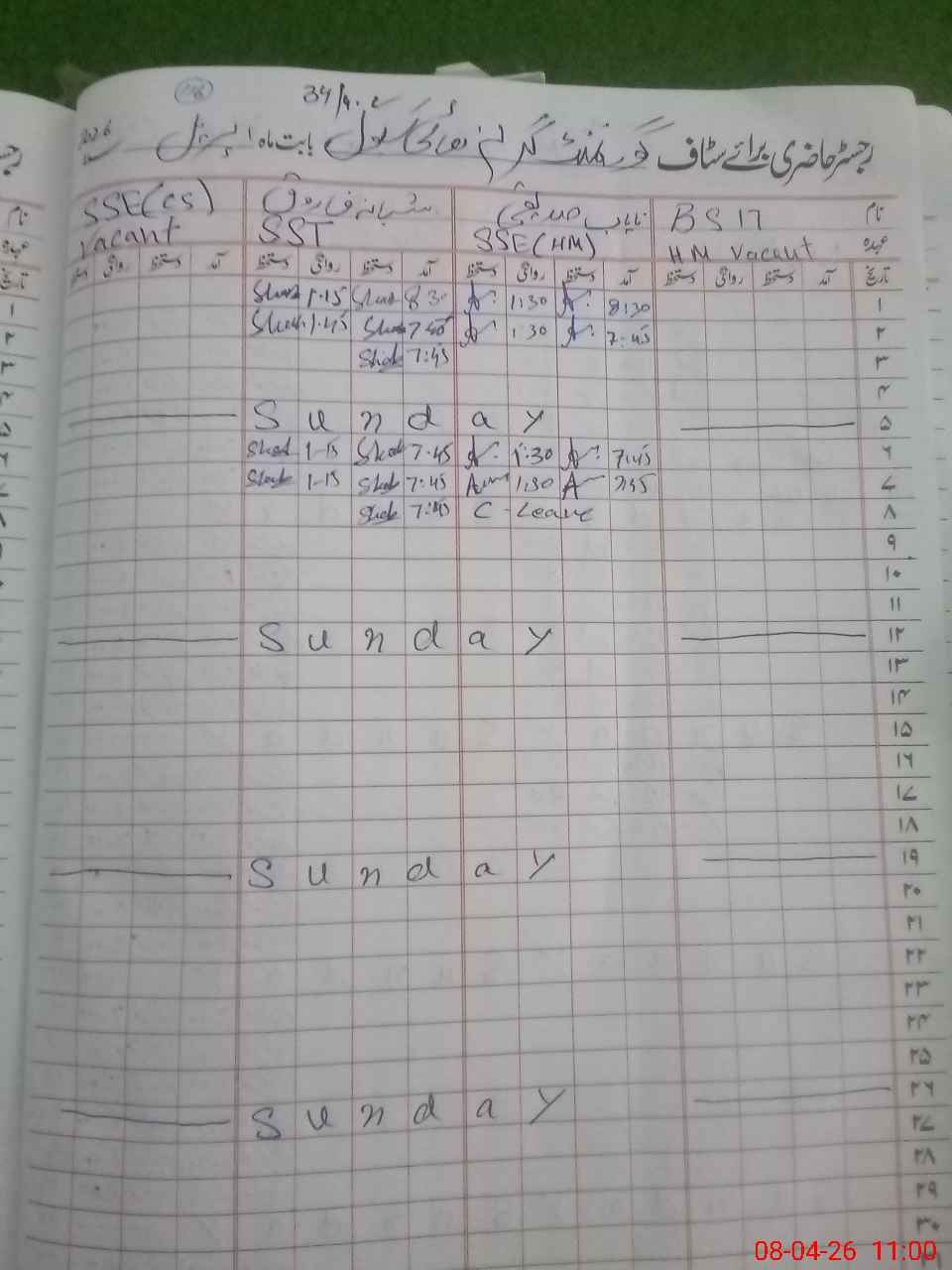 | Remarks (Use Separate Page if Required): I have to visit GGHS 34/4l 11-00am Head teacher Nayab saddique on Maternity leave she was not handed over the NSB and FTF record | |||||