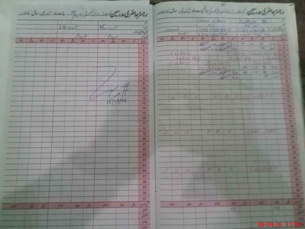 | Name: ZU**** AL**** Designation: (School Headmaster's/Headmistress's) PST Phone/Cell Number: 03**** |
