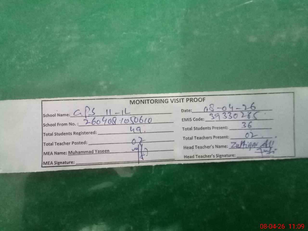 | EMIS Code: 39330265 | Name of School: GPS CHAK 11/IL | |||