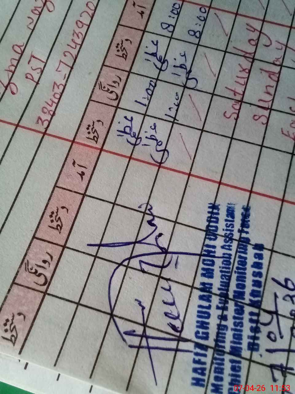 | Name: Sh**** Ak**** Designation: (School Headmaster's/Headmistress's) PST Phone/Cell Number: 03**** |