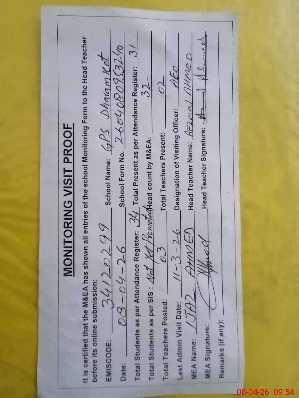 | EMIS Code: 34120299 | Name of School: GPS DHARAM KOT | |||