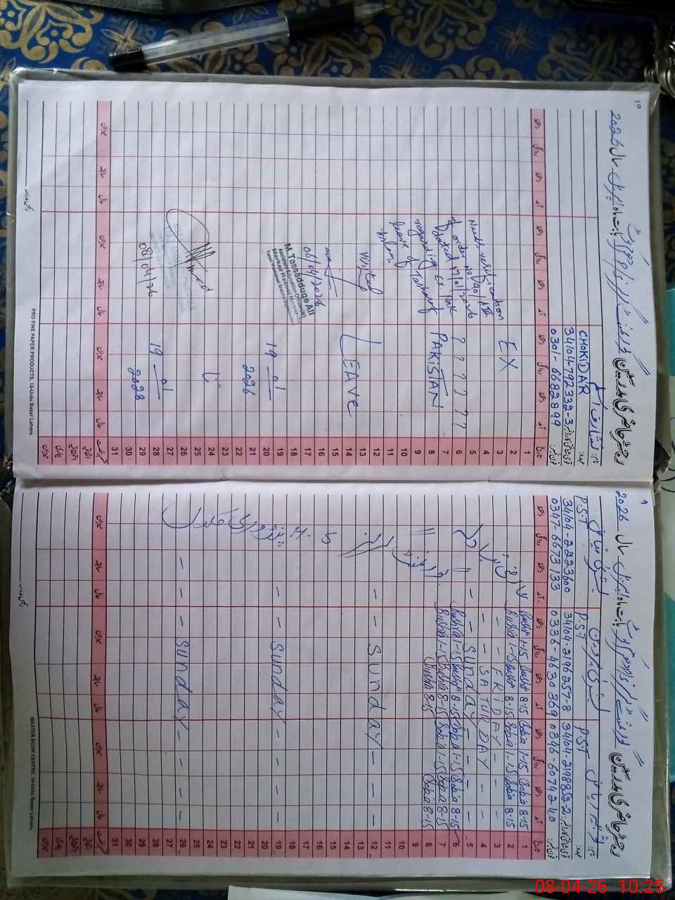 | Leave | Duty | Absent | Maternity | Medical | Ex- Pak |