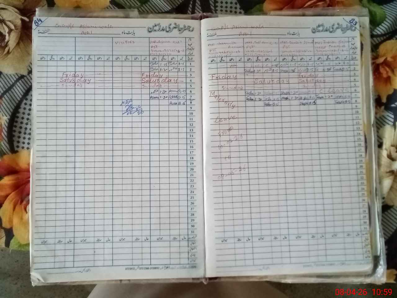 | Leave | Duty | Absent | Maternity | Medical | Ex- Pak |