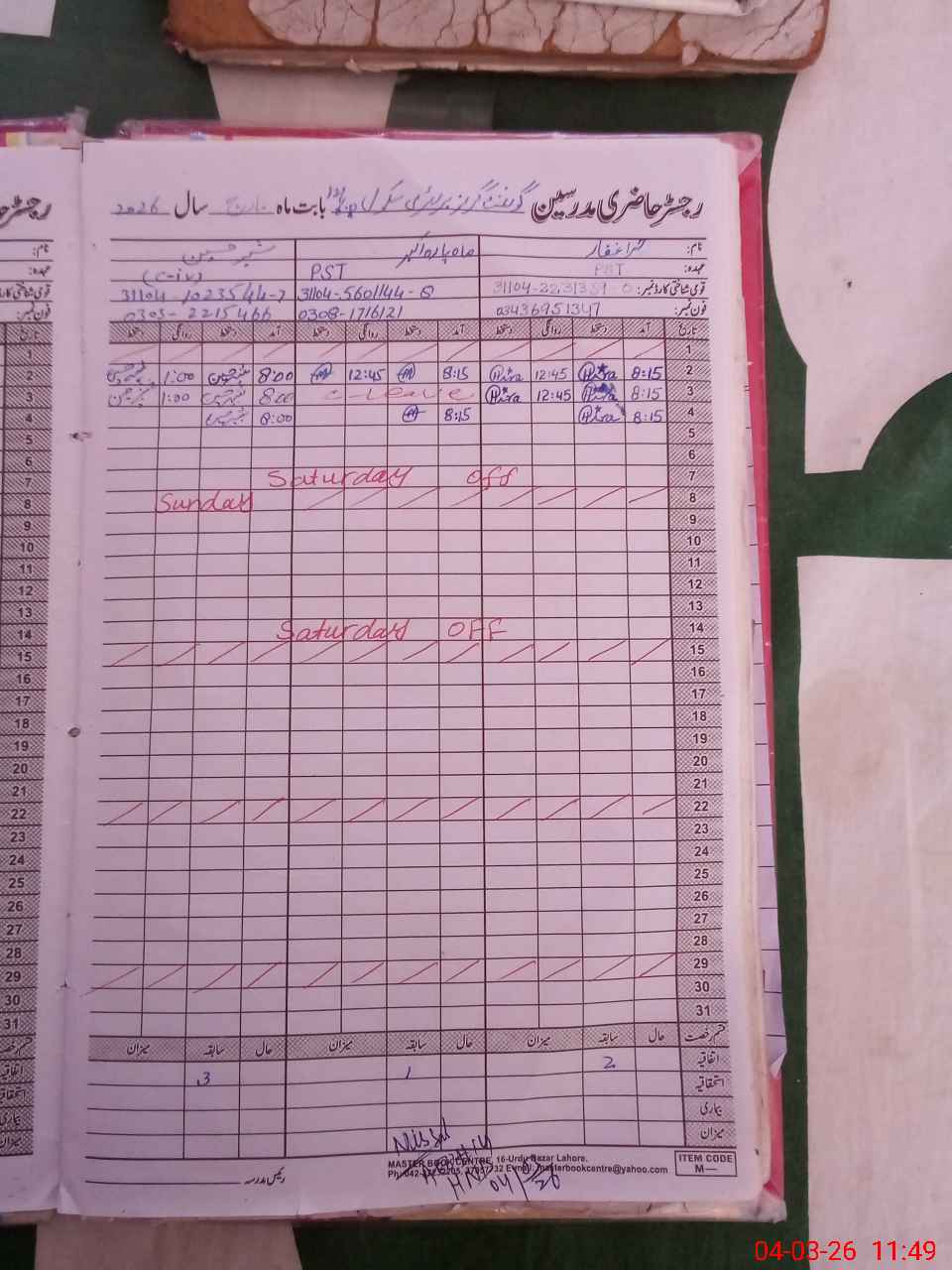 | Name: Sa**** Pa**** Designation: (School Headmaster's/Headmistress's) Est Phone/Cell Number: 03**** |