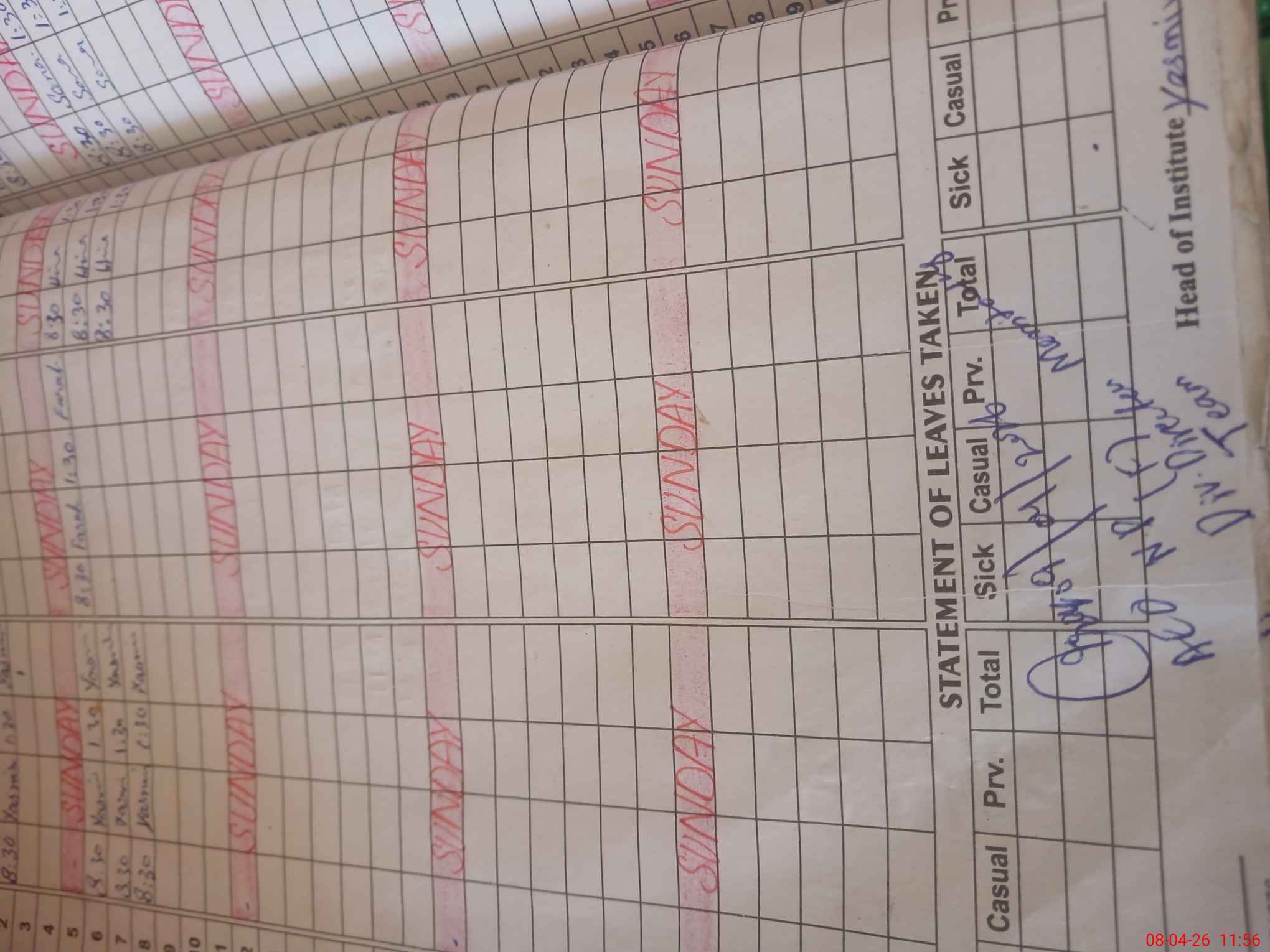 | Leave | Duty | Absent | Maternity | Medical | Ex- Pak |