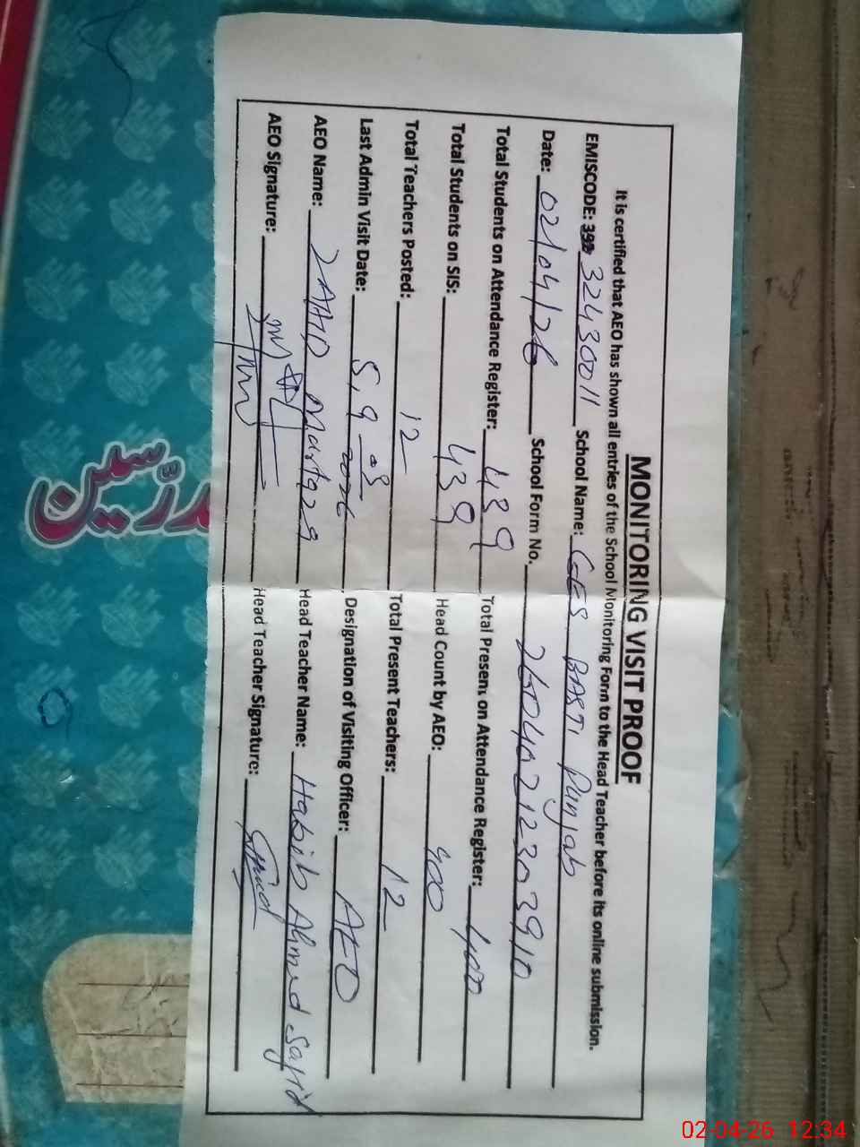 | EMIS Code: 32430011 | Name of School: GES BASTI PUNJAB | |||