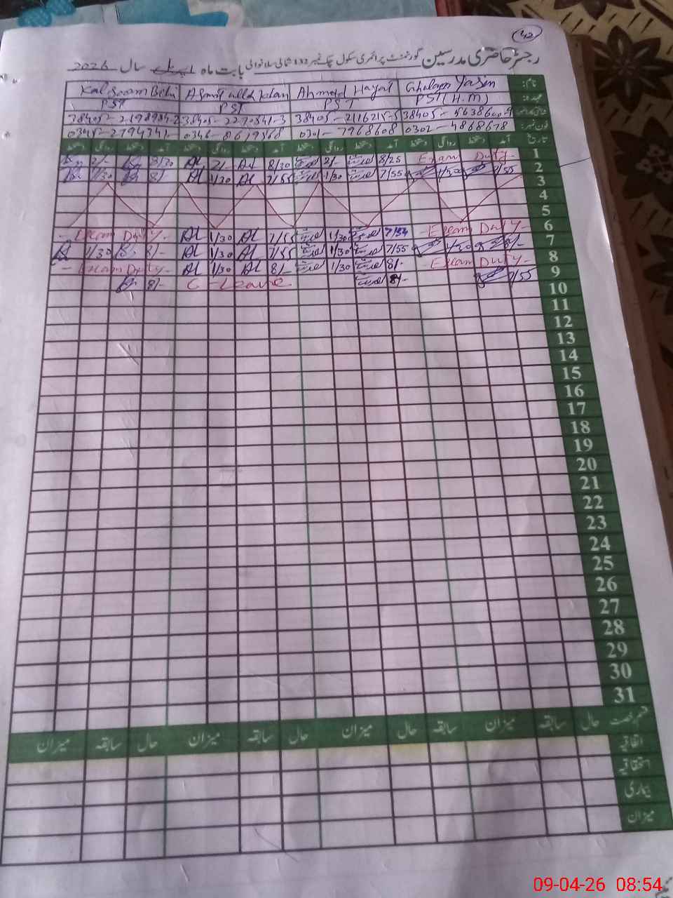 | Name: Gh**** Ya**** Designation: (School Headmaster's/Headmistress's) PTC/JV Phone/Cell Number: 03**** |