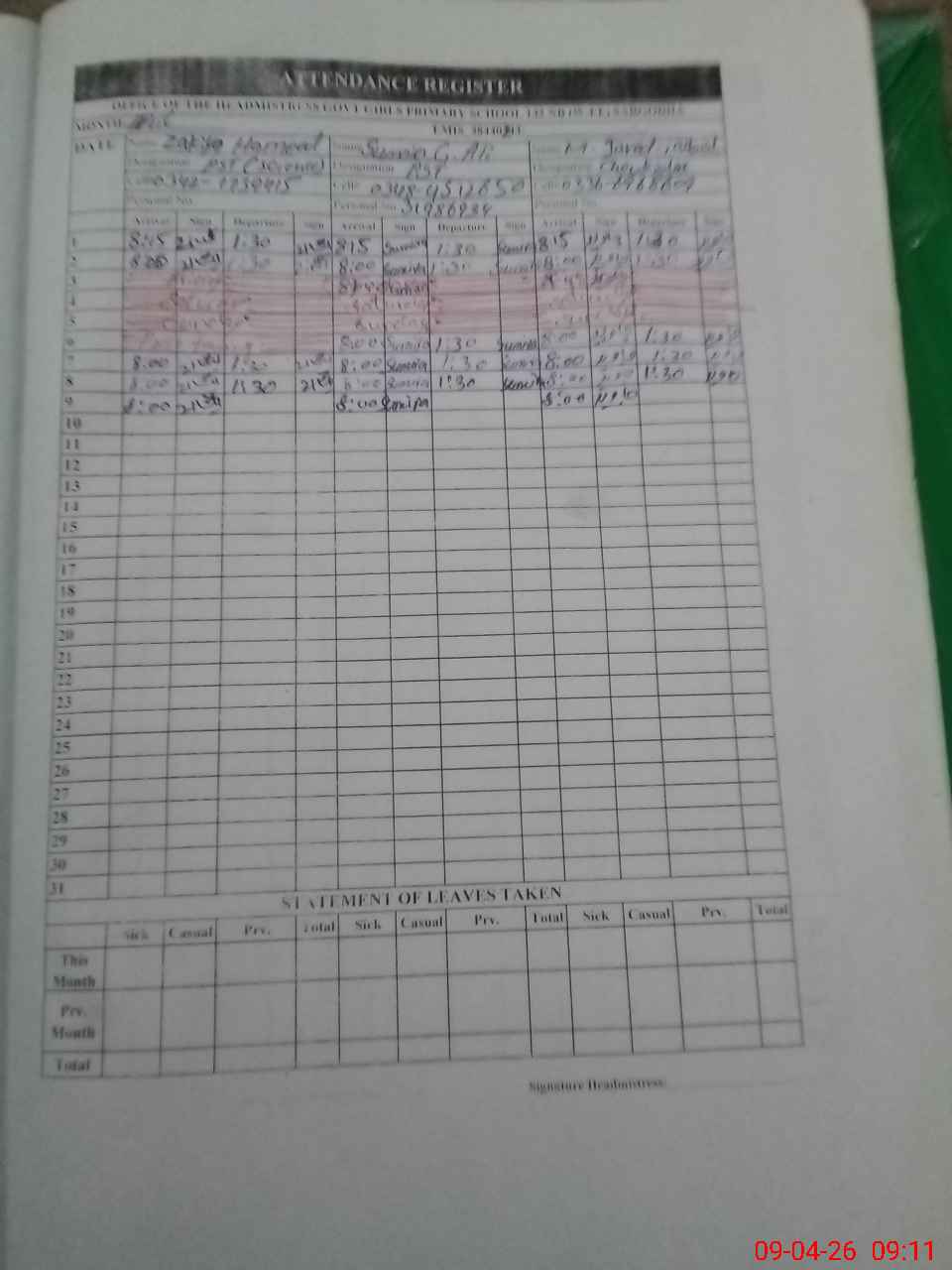 | Name: ZA**** HA**** Designation: (School Headmaster's/Headmistress's) PST Phone/Cell Number: 03**** |