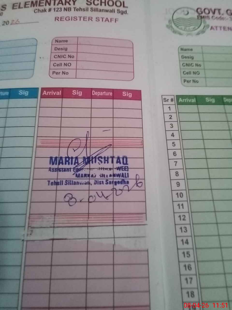 | District: SARGODHA | Tehsil: SILLANWALI | Markaz: SILLANWALI - FEMALE | Level: Middle | |