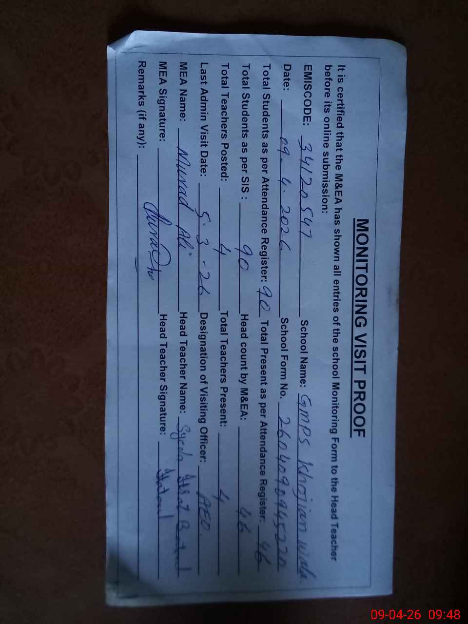 | EMIS Code: 34120547 | Name of School: GMPS KHOJIAN WALA | |||
