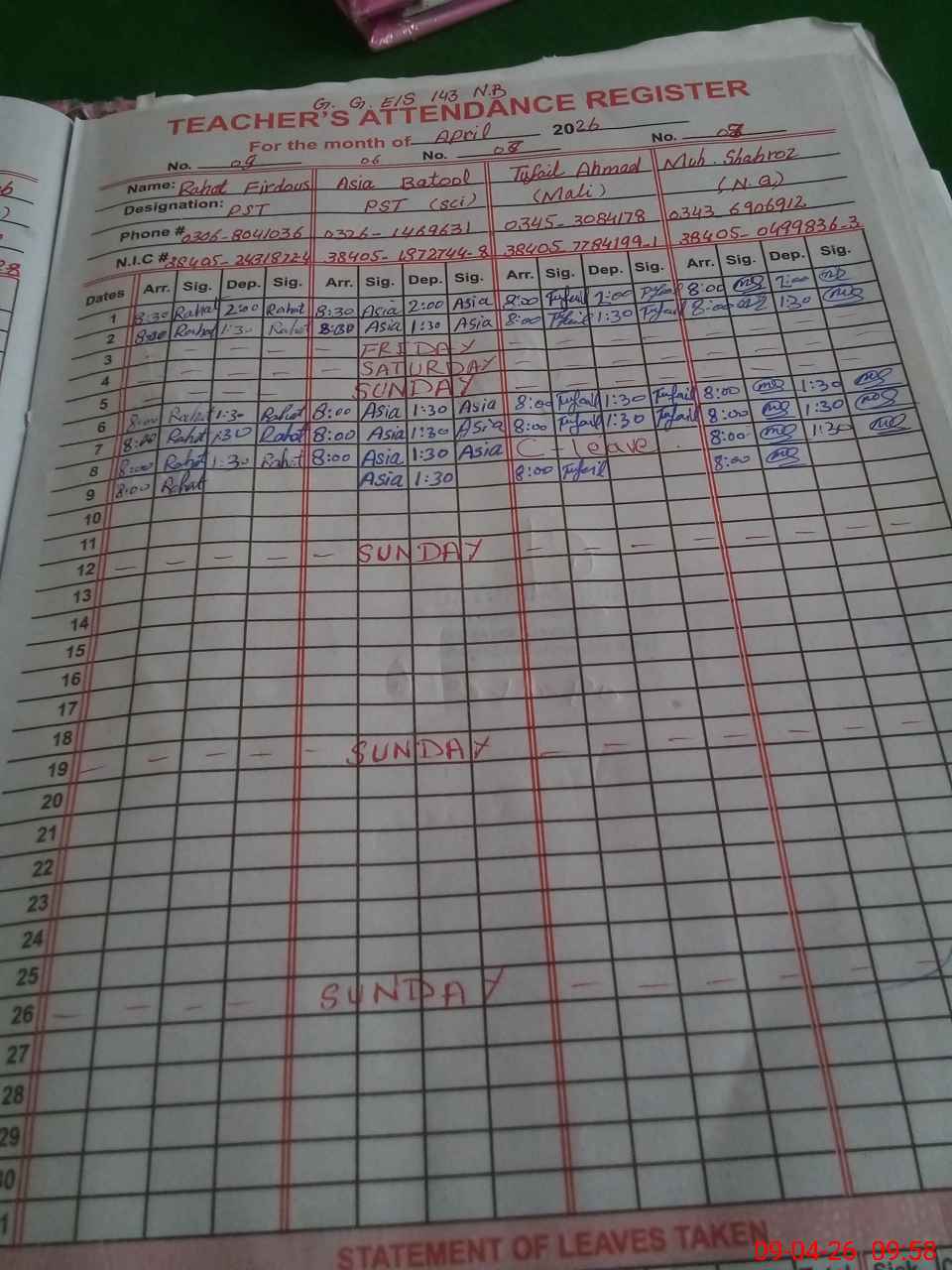 | Name: Sa**** Na**** Designation: (School Headmaster's/Headmistress's) SST Sci Phone/Cell Number: 03**** |
