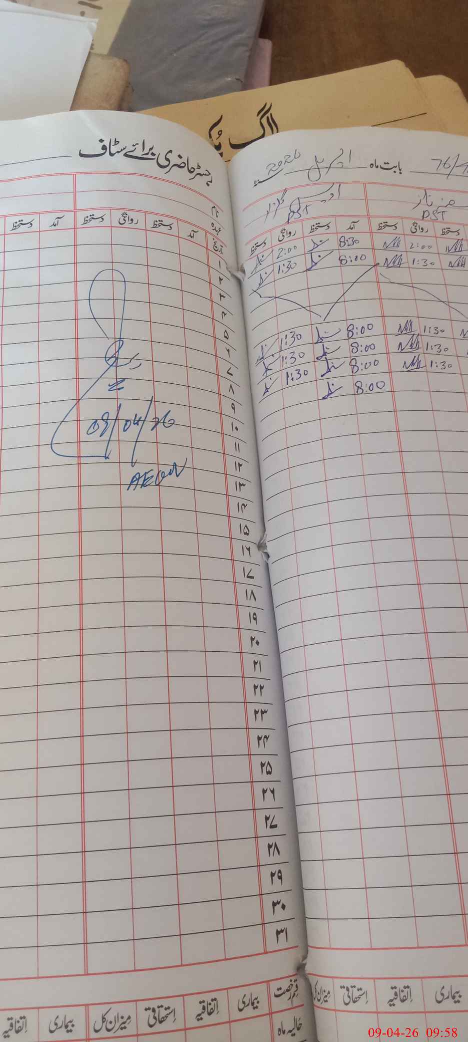 | CNIC | Full Name | Designation | R/C | Absence During Last Calender Month |