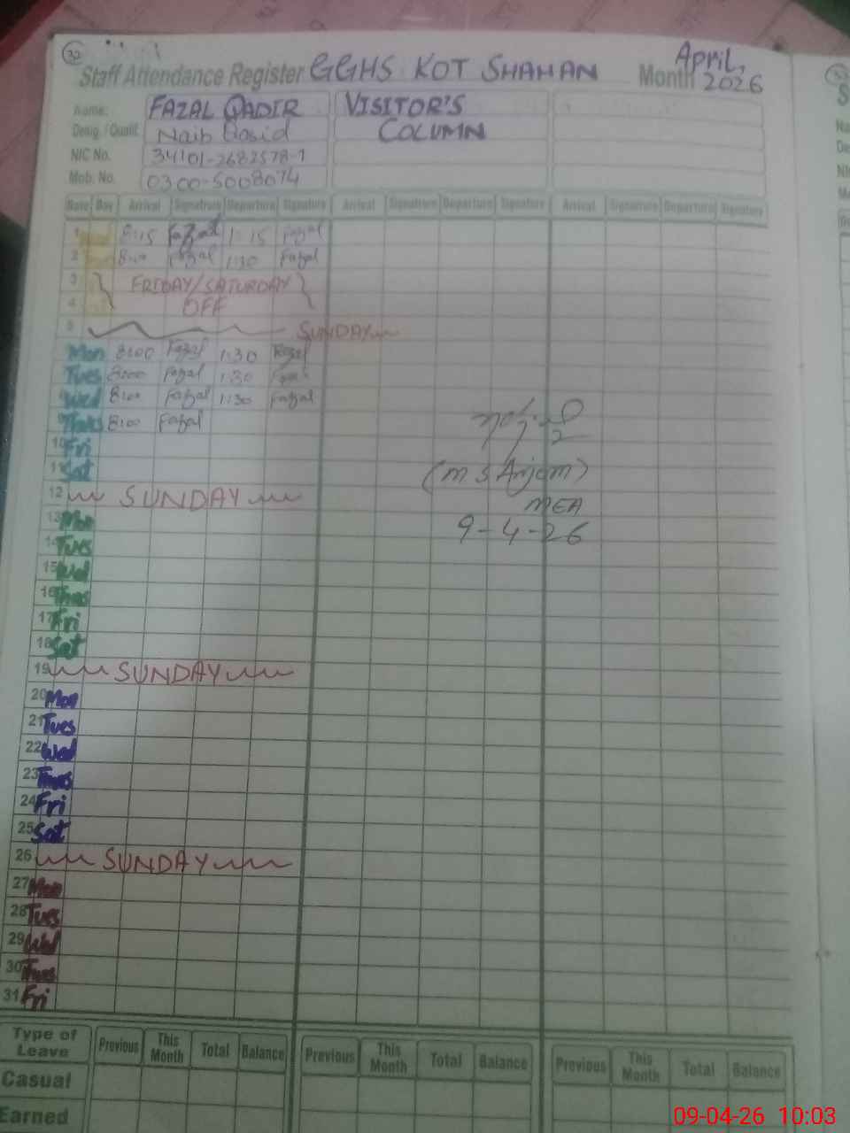 | 34**** | FA**** QA**** | NAIB QASID | Regular | 0 | 0 | 0 | 0 | 0 | 0 | 0 | 0 | 0 | Other |