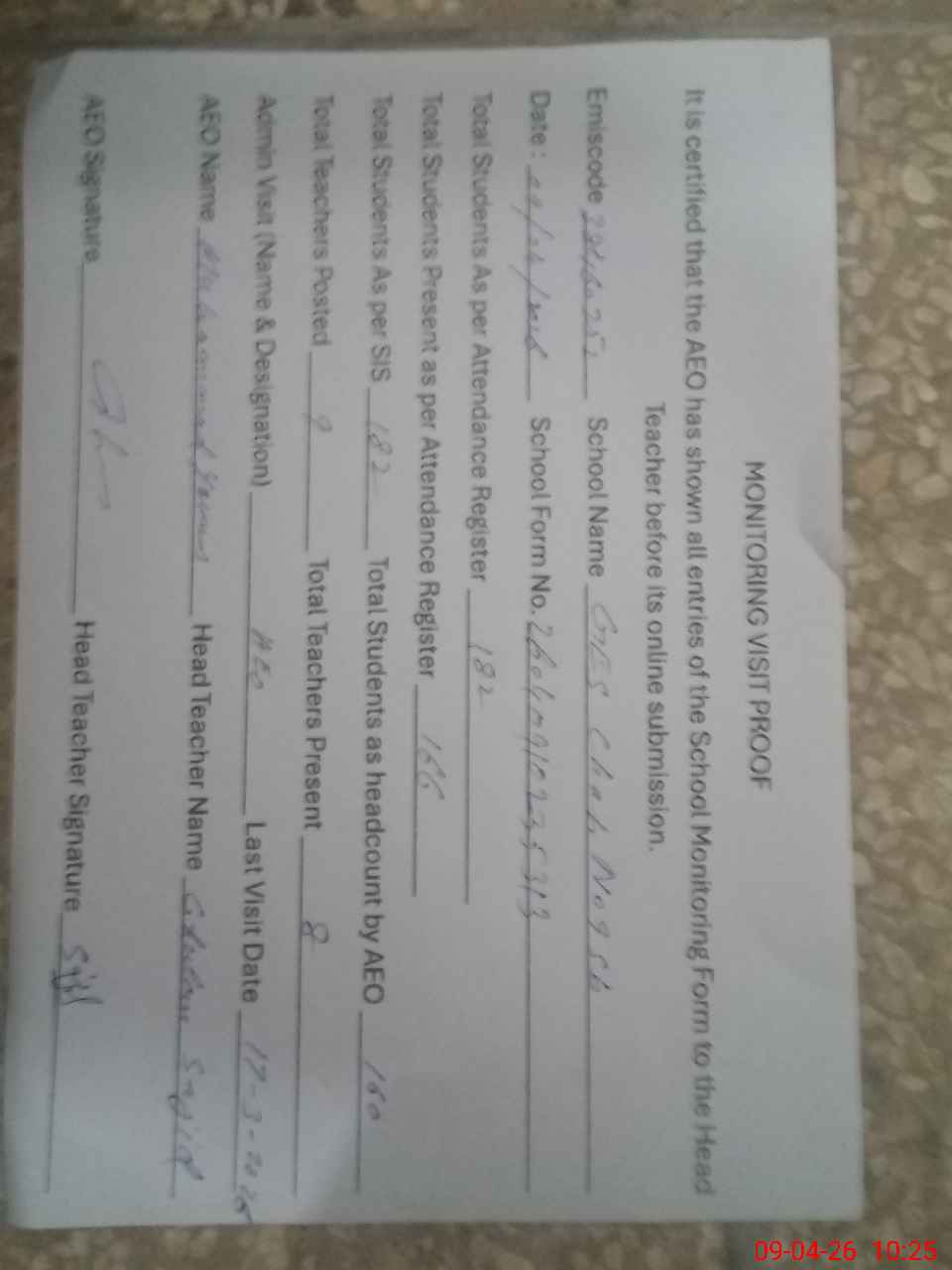 | EMIS Code: 38460252 | Name of School: GES CHAK NO.9 SB | |||