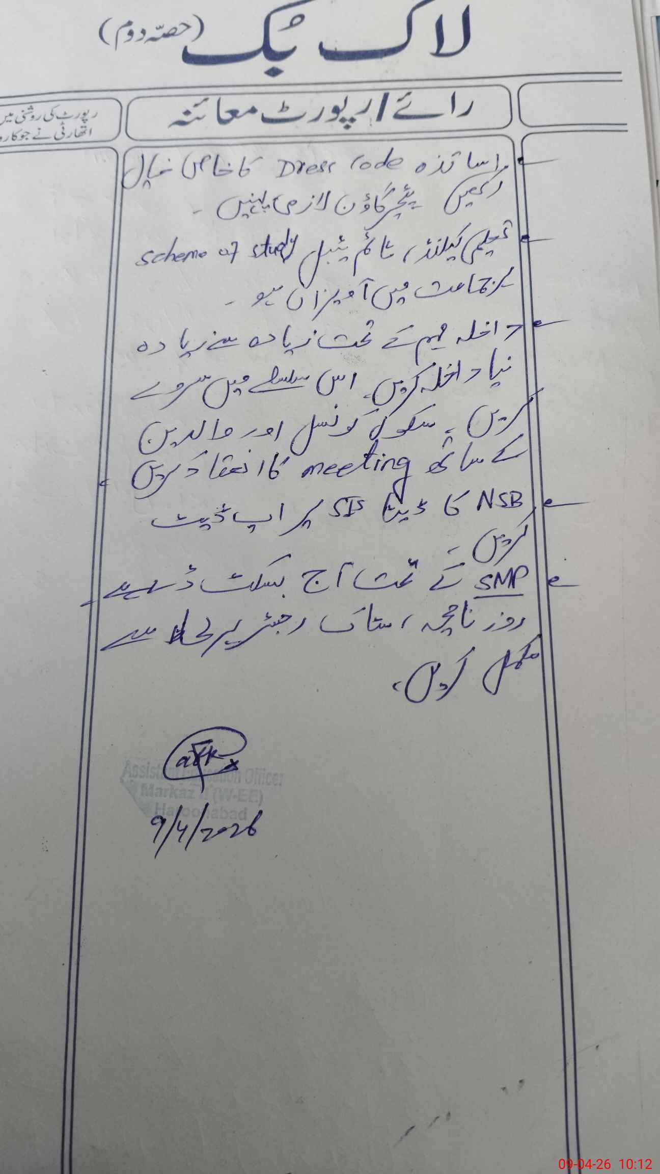 | Certified that this School was Inspected by the Undersigned MEA/DMO Today and the Information Stated Above is as Per Record. | |||||
