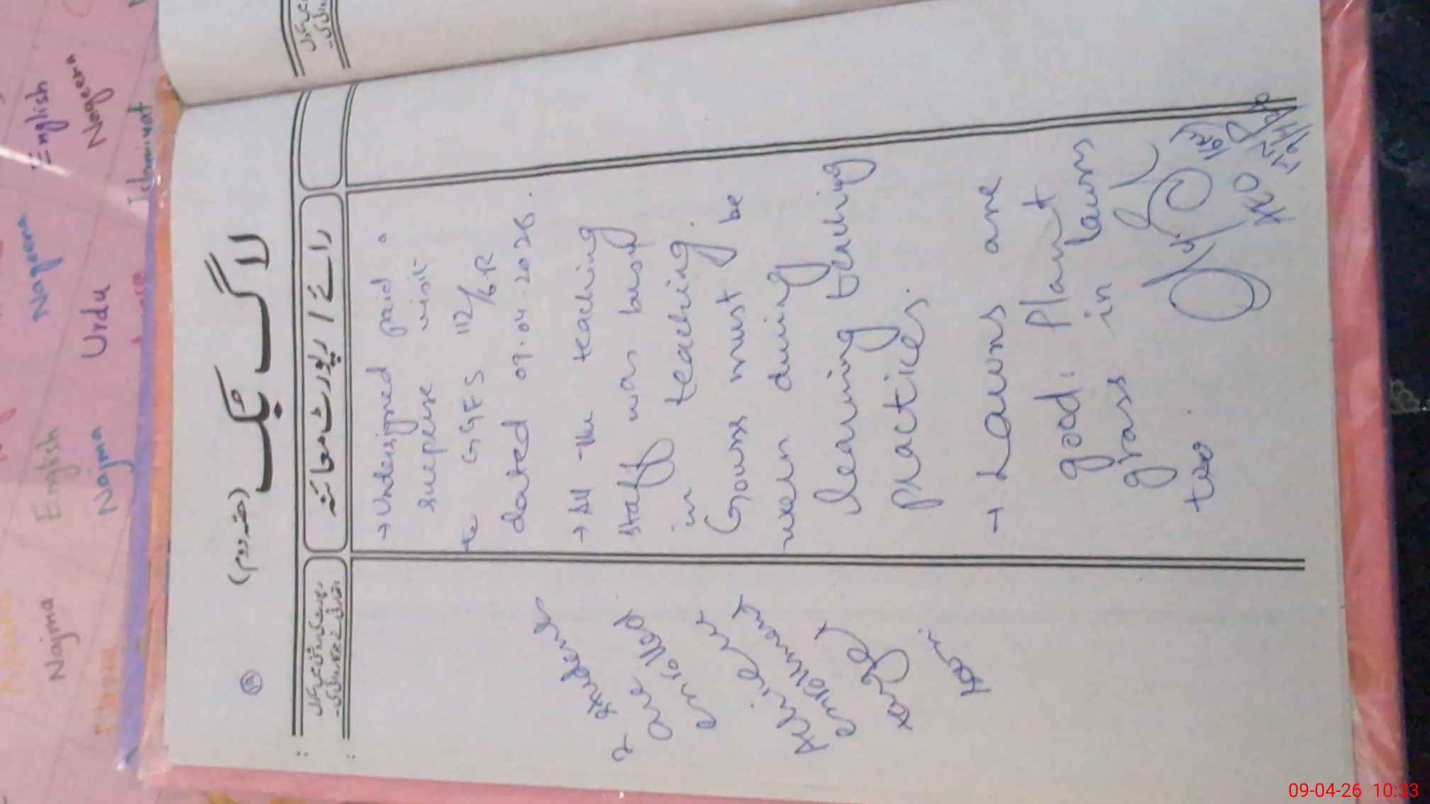 | Attendance Register | Head Teacher | MEA with School | Visit Proof |