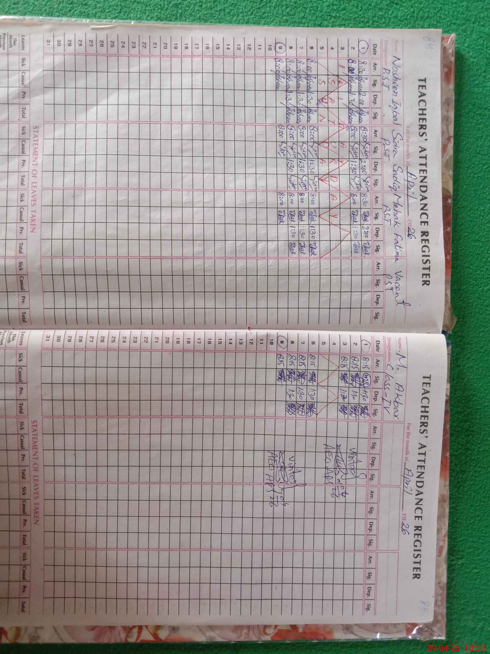 | Leave | Duty | Absent | Maternity | Medical | Ex- Pak |