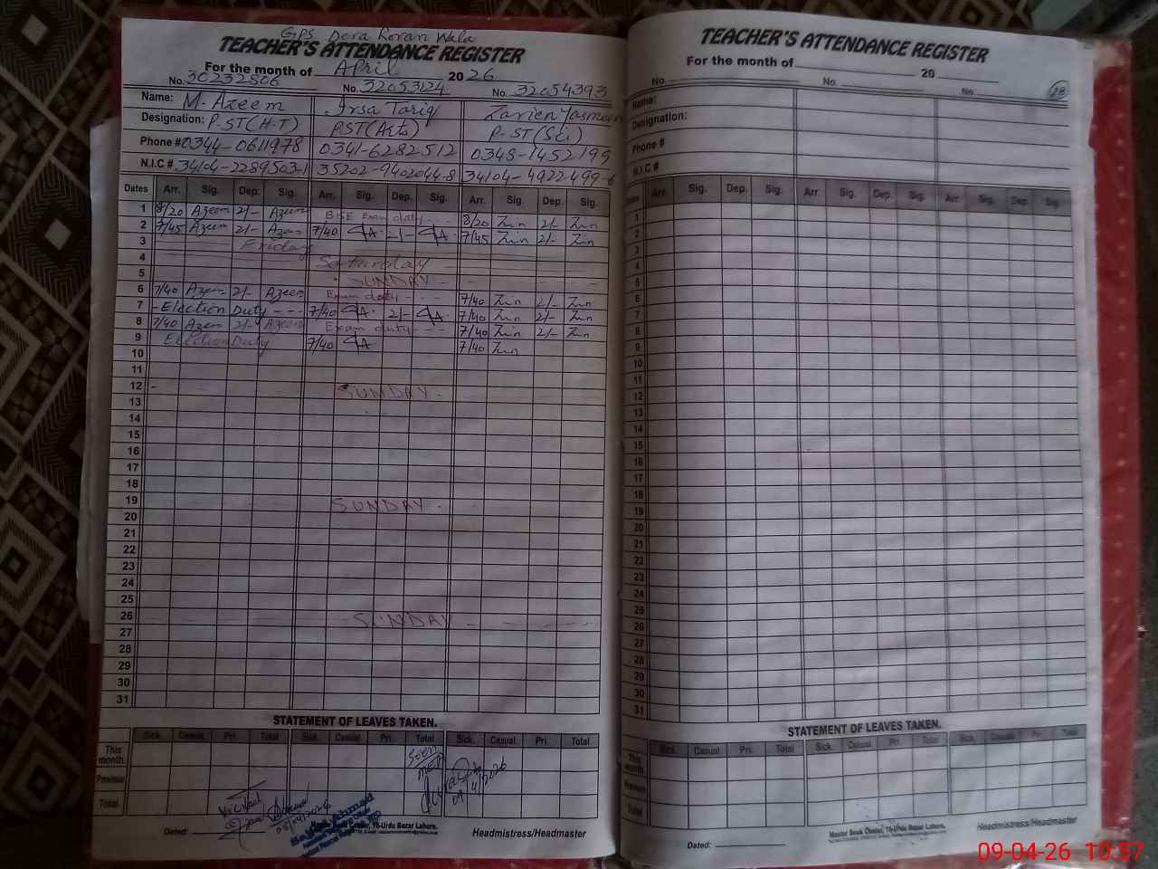 | Name: MAz**** Designation: (School Headmaster's/Headmistress's) PST Phone/Cell Number: 03**** |