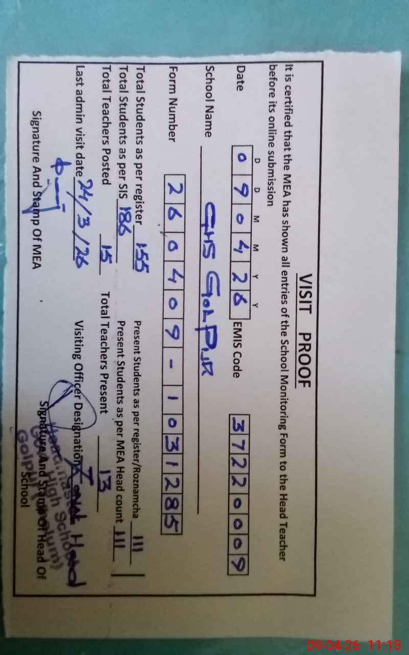 | EMIS Code: 37220009 | Name of School: GHS GOLPUR | |||