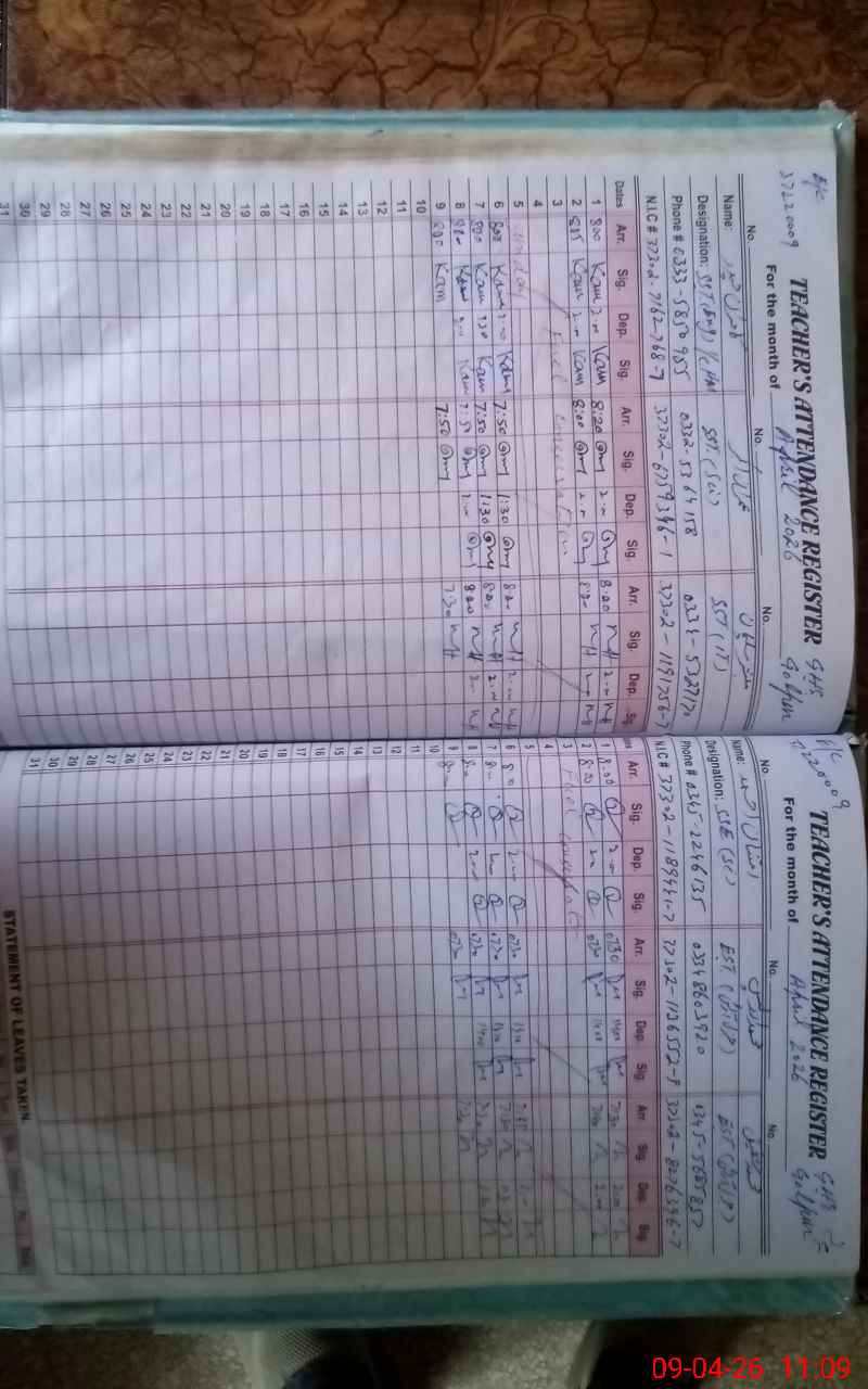 | CNIC | Full Name | Designation | R/C | Absence During Last Calender Month |