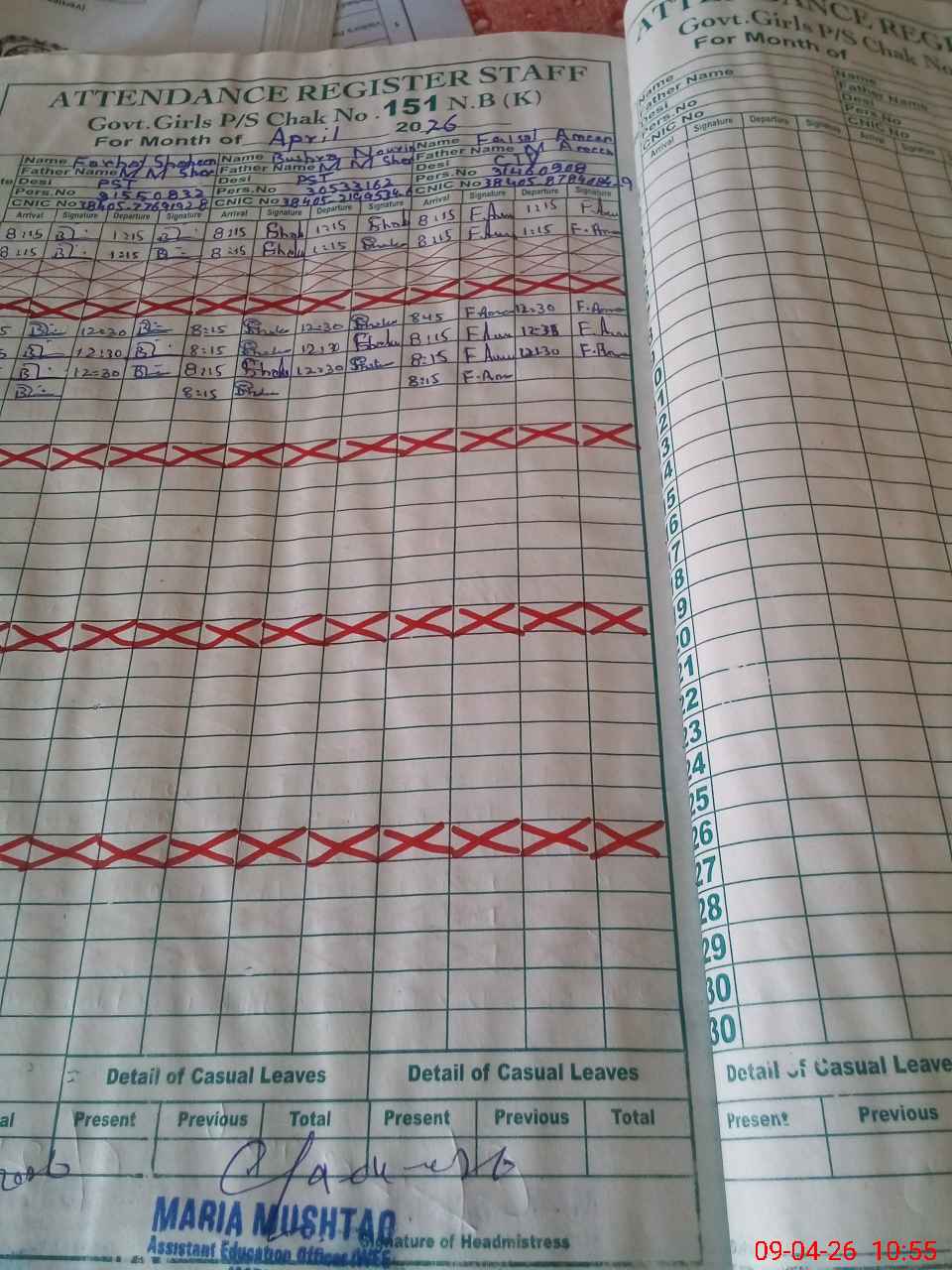 | CNIC | Full Name | Designation | R/C | Absence During Last Calender Month |