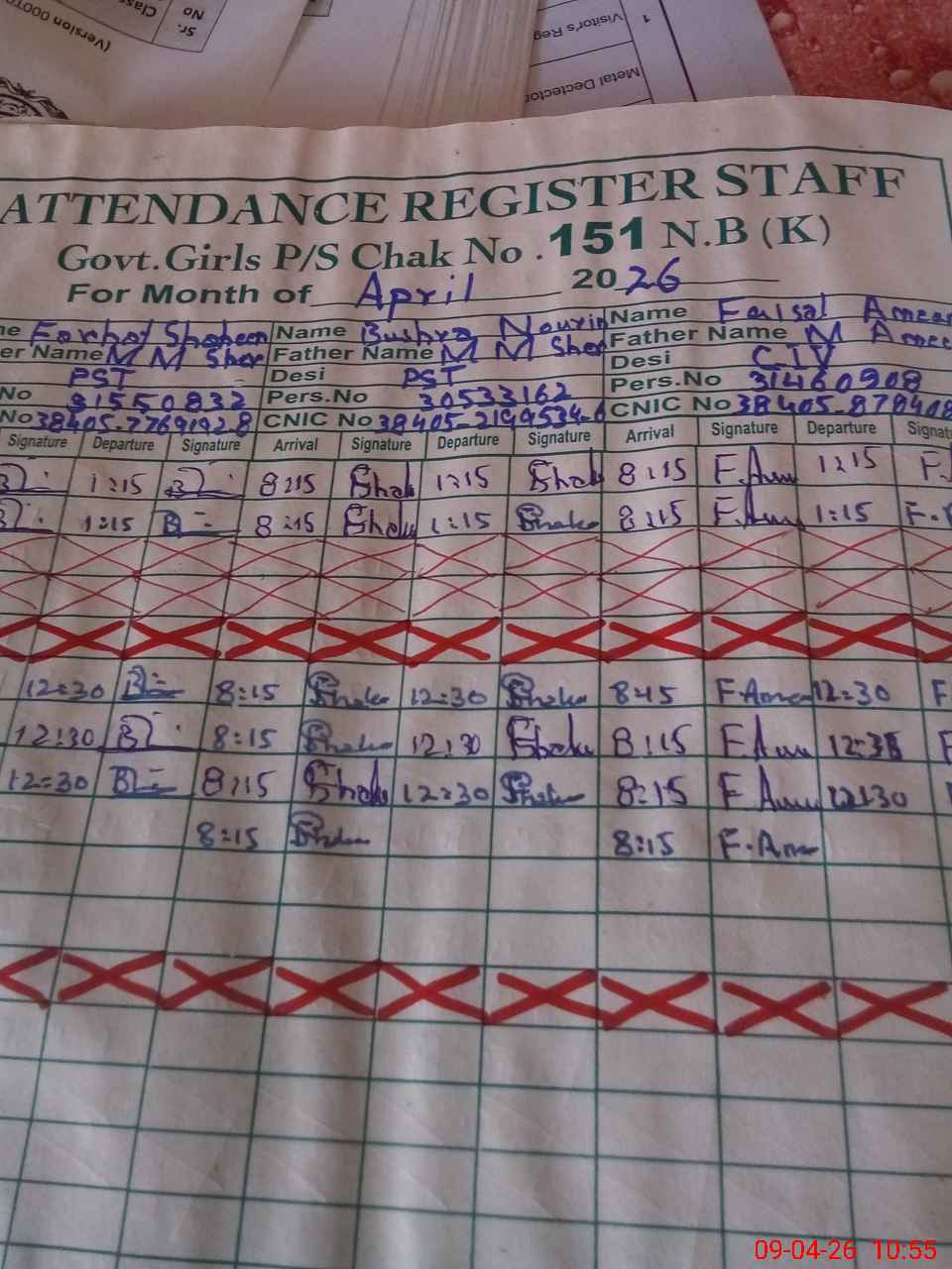 | CNIC | Full Name | Designation | R/C | Absence during last cal. month |