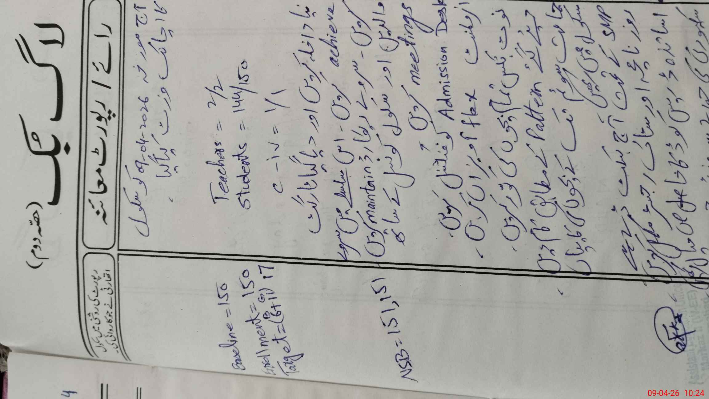 | Textbook Sets Received in the School | 45 | 24 | 26 | 21 | 17 | 16 | |||||