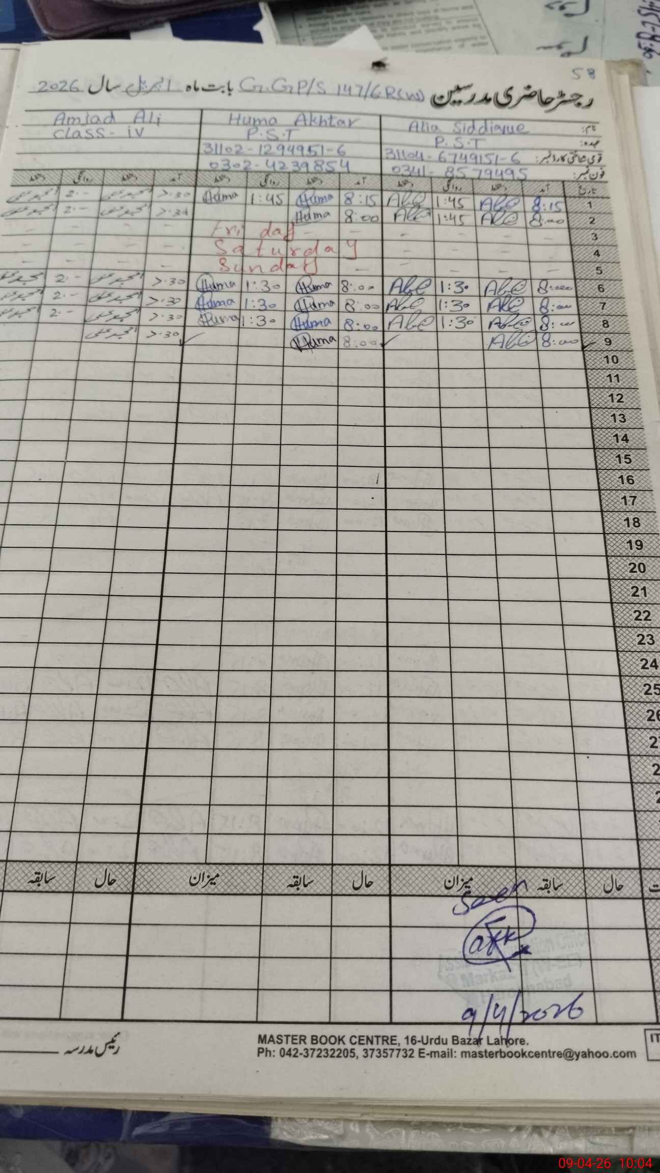 | Name: Al**** Si**** Designation: (School Headmaster's/Headmistress's) PST Phone/Cell Number: 03**** |