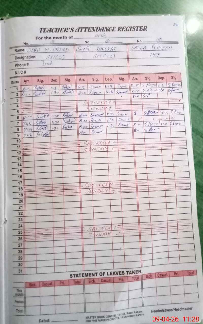 | Name: RA**** IS**** Designation: (School Headmaster's/Headmistress's) Incharge Phone/Cell Number: 03**** |
