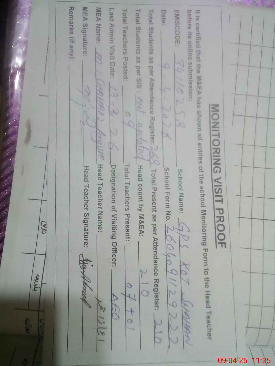 | EMIS Code: 34110258 | Name of School: GPS KOT SHAHAN | |||