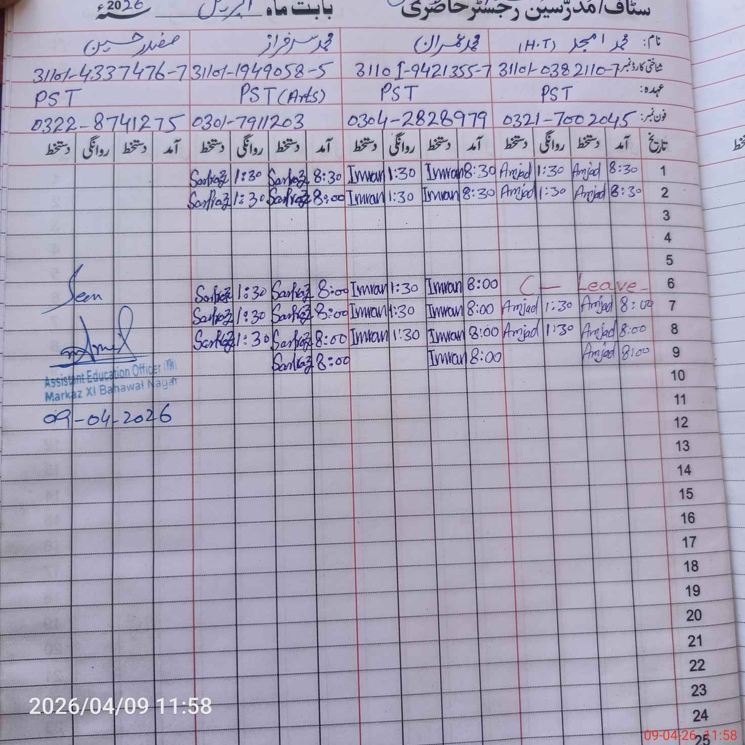 | Name: MU**** AM**** Designation: (School Headmaster's/Headmistress's) ESE SCI MATH Phone/Cell Number: 03**** |