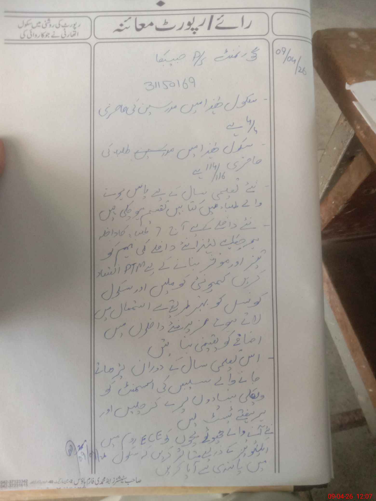 | Certified that this School was Inspected by the Undersigned MEA/DMO Today and the Information Stated Above is as Per Record. | |||||