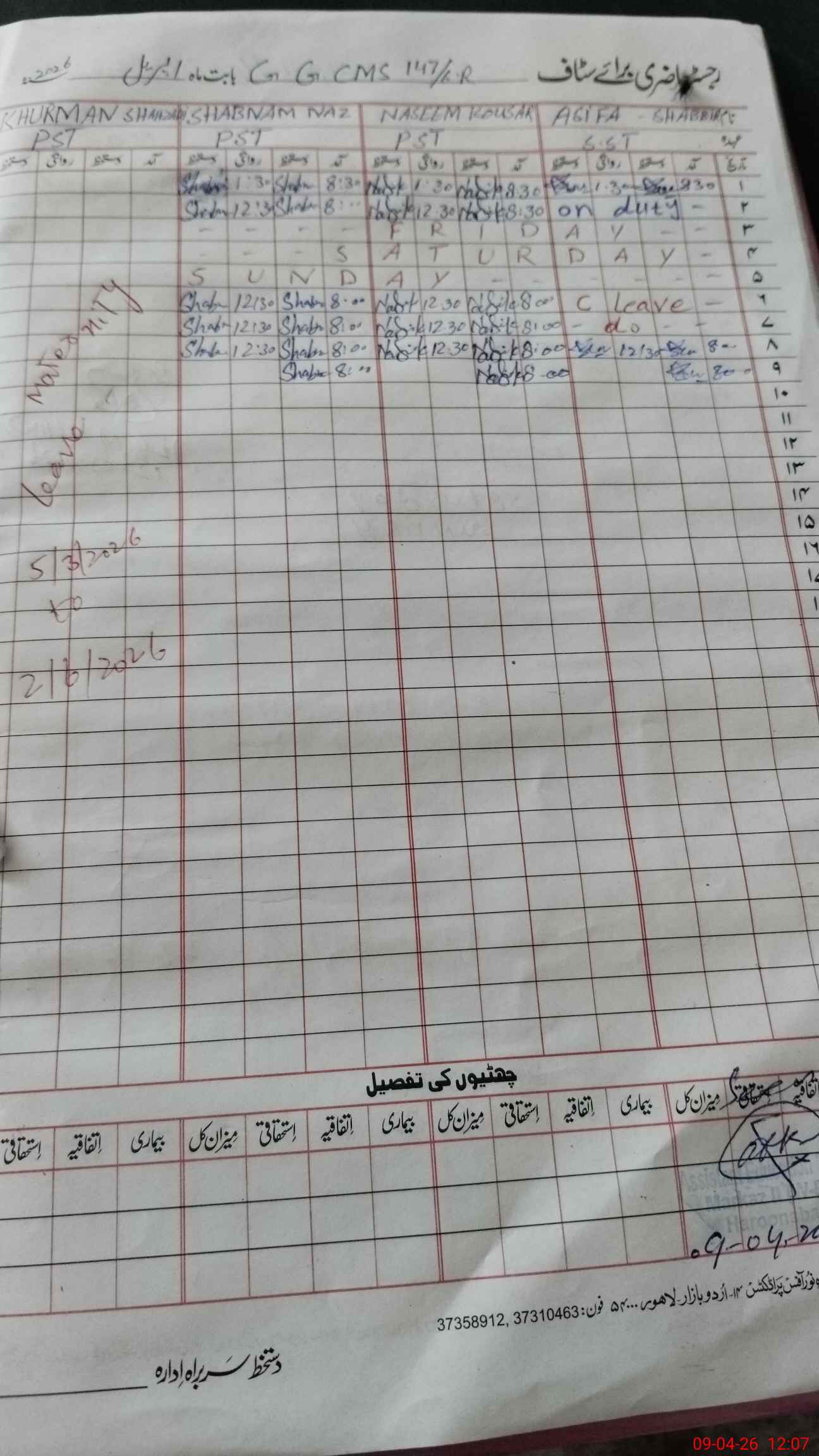 | 31**** | Kh**** Sh**** | PST Science/Maths | Regular | 0 | 0 | 0 | 0 | 0 | 0 | 0 | 0 | 0 | Maternity |