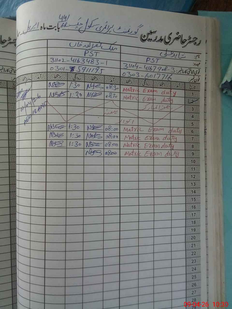 | 31**** | Sh**** Al**** | PST Science/Maths | Regular | 0 | 0 | 0 | 0 | 0 | 0 | 0 | 0 | 0 | Exam Duty |