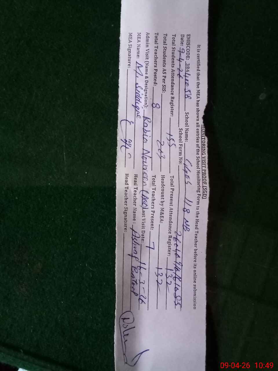 | Monitoring Date: 09-04-2026 | Start Time: 09-04-2026 10:16 AM | End Time: 09-04-2026 10:51 AM | Name of MEA: MU**** SI**** | |