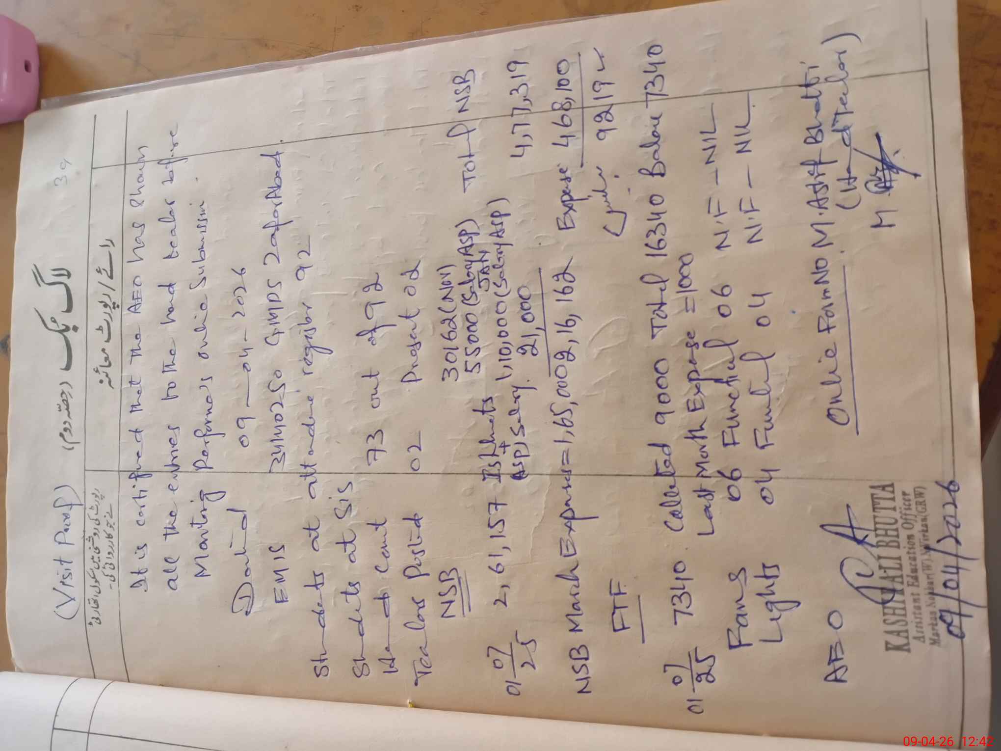 | Certified that this School was Inspected by the Undersigned MEA/DMO Today and the Information Stated Above is as Per Record. | |||||