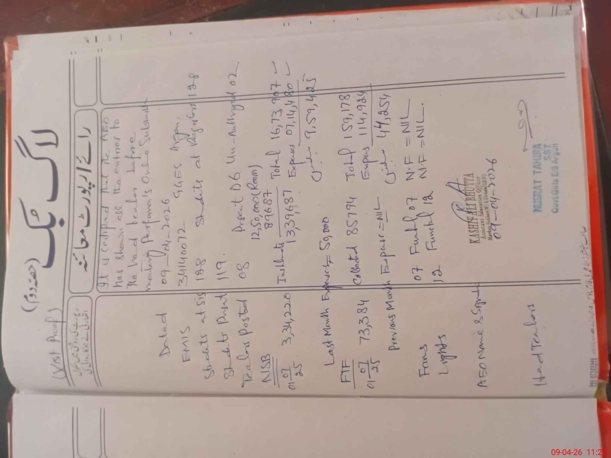| Name: Nu**** Ta**** Designation: (School Headmaster's/Headmistress's) SST Phone/Cell Number: 03**** |