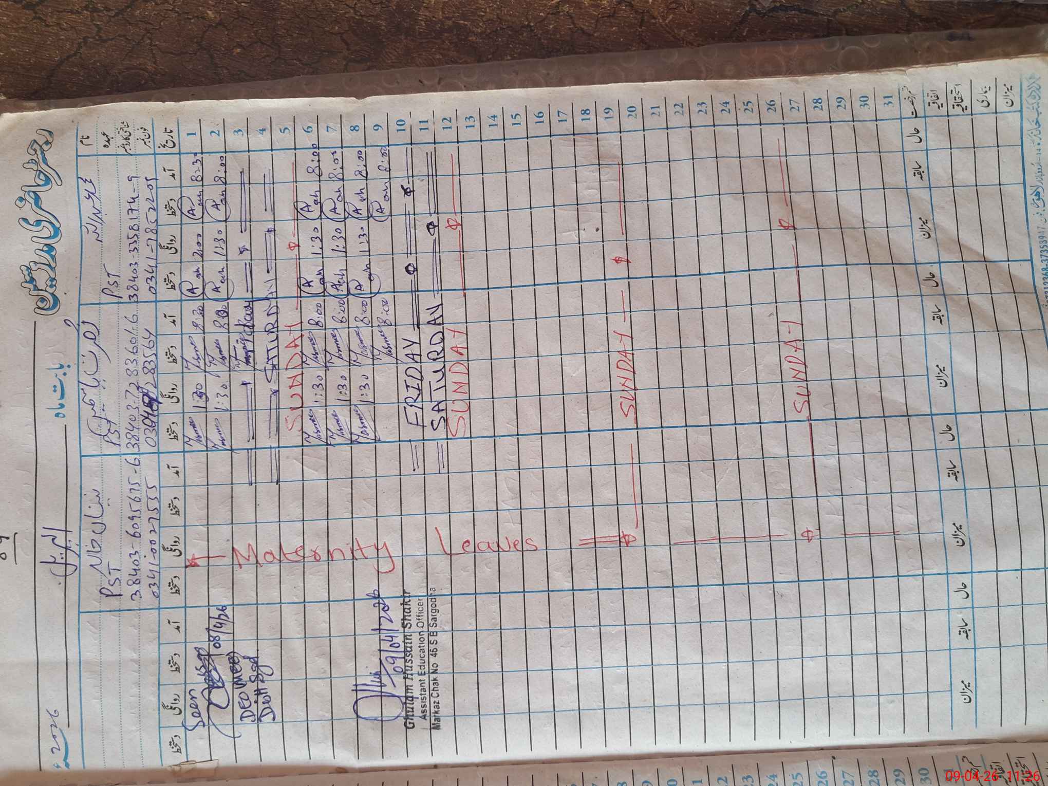 | Leave | Duty | Absent | Maternity | Medical | Ex- Pak |