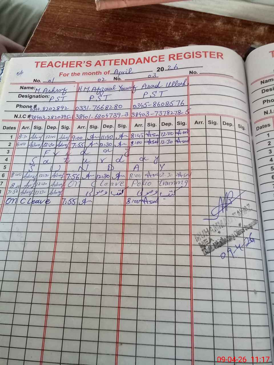 | Name: MU**** AS**** Designation: (School Headmaster's/Headmistress's) PST Phone/Cell Number: 03**** 82**** |