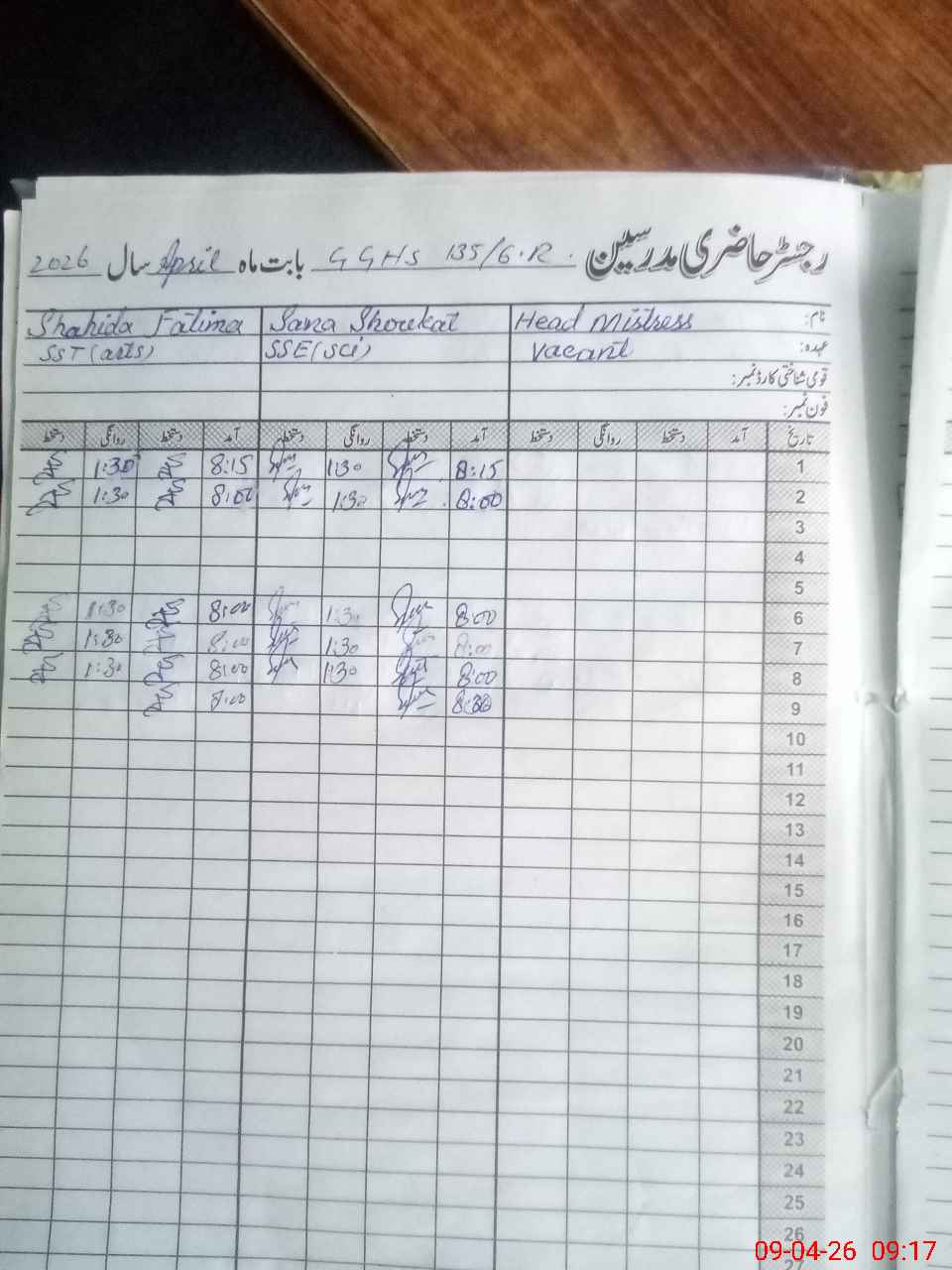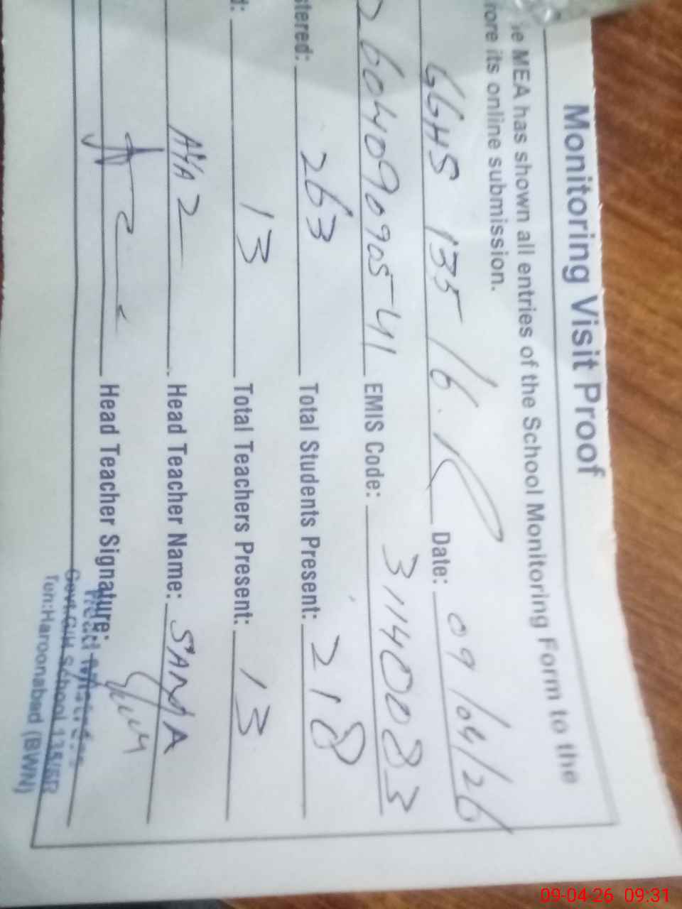| EMIS Code: 31140083 | Name of School: GGHS CHAK NO 135/6-R | |||