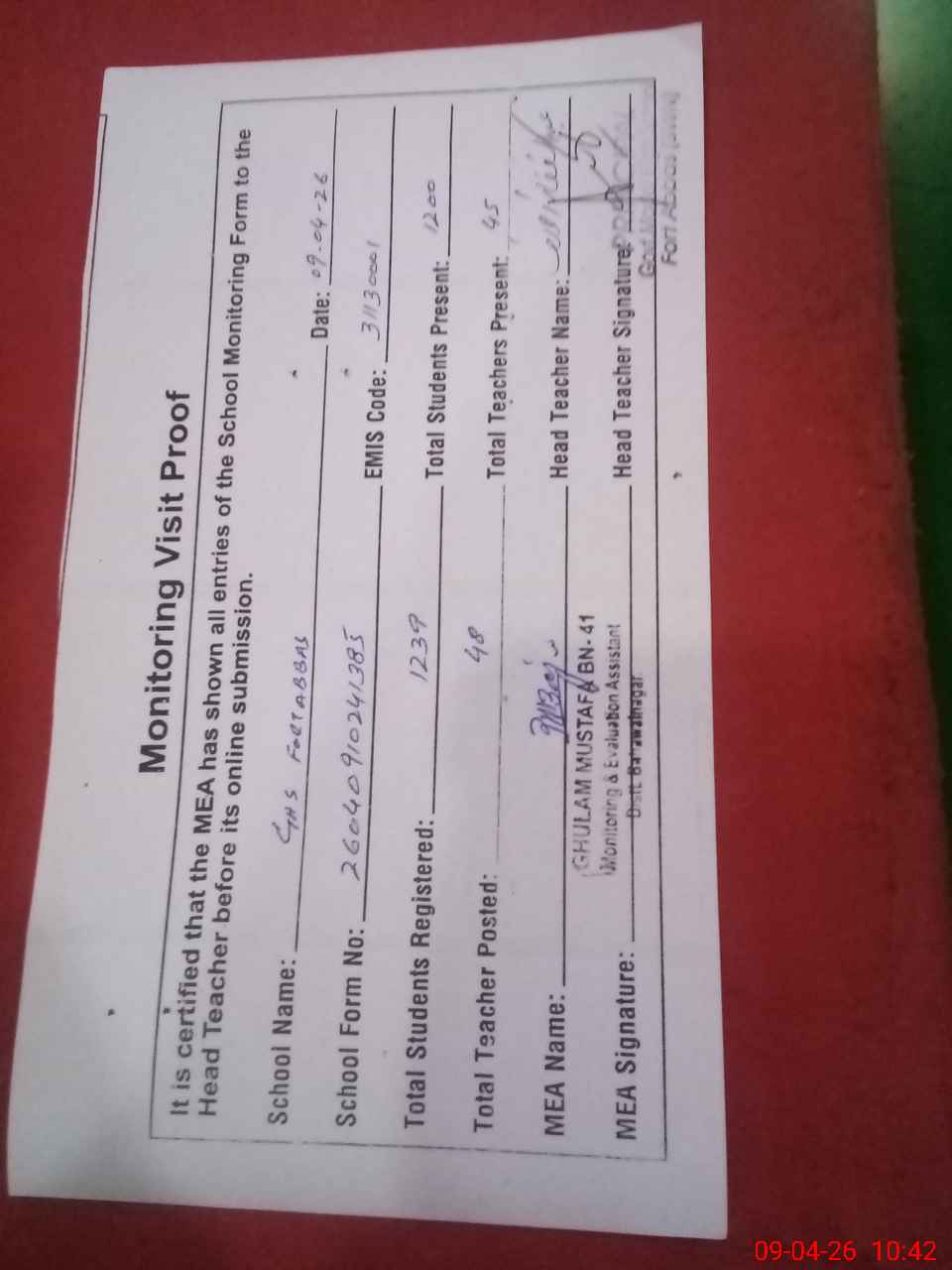 | EMIS Code: 31130001 | Name of School: GHS FORT ABBAS | |||