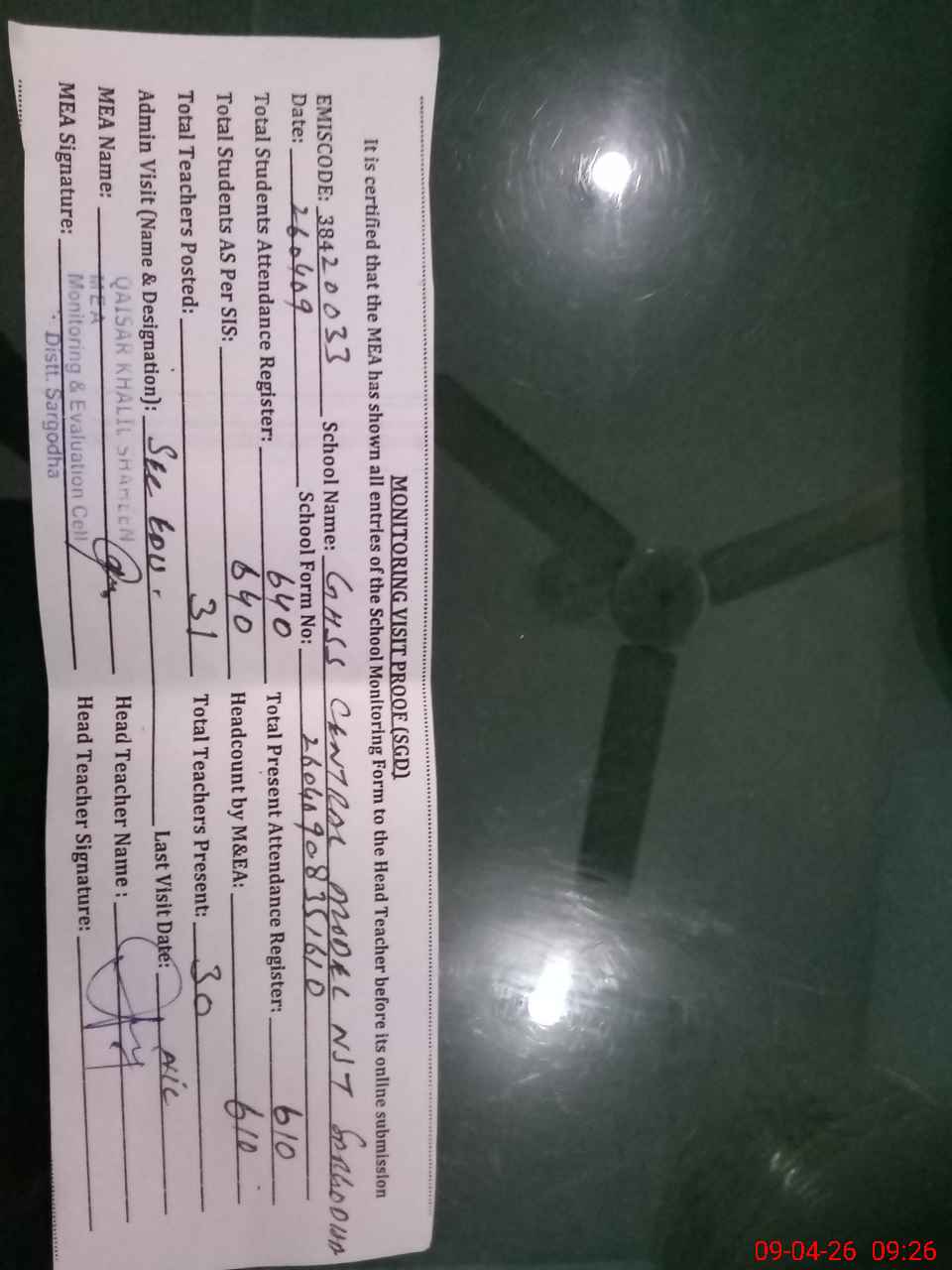 | EMIS Code: 38420033 | Name of School: GHSS CENTRAL MODEL NST SARGODHA | |||