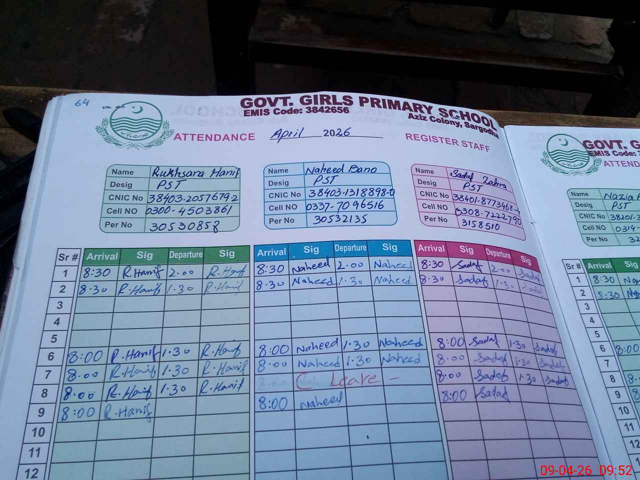 | Name: Ru**** Ha**** Designation: (School Headmaster's/Headmistress's) PST Phone/Cell Number: 03**** |