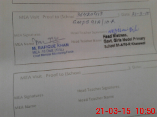 | Certified that this School was Inspected by the Undersigned MEA/DMO Today and the Information Stated Above is as Per Record. | |||||